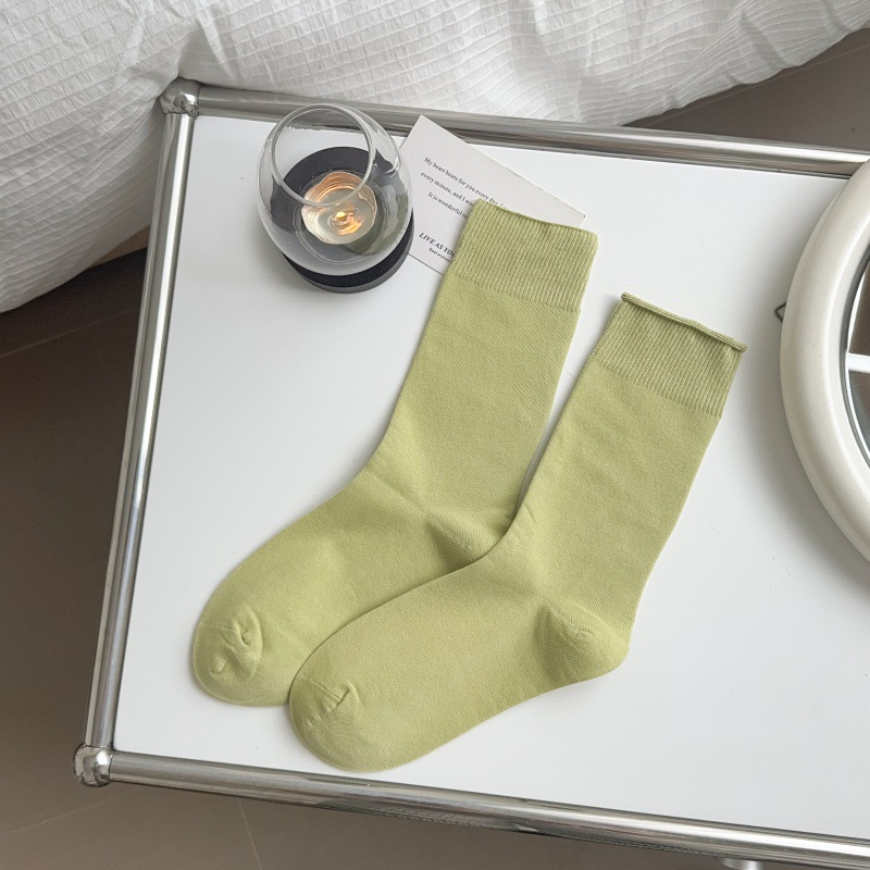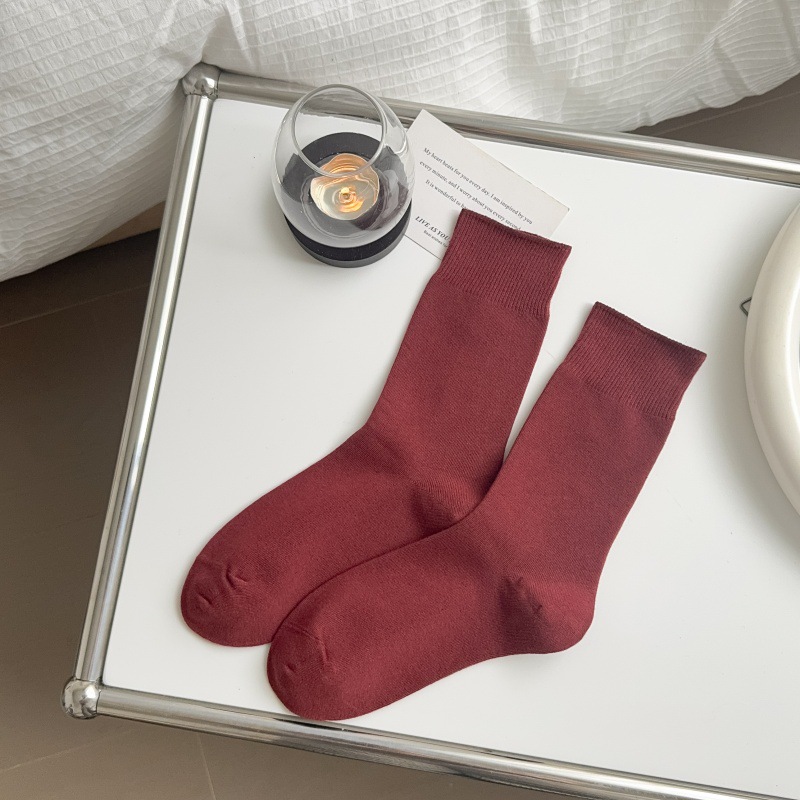 한국 단색 더미 양말-MEKKI Ankora 붉은 양말 여성 가을과 겨울 면화 양말 타이드 여성용 긴 튜브 양말