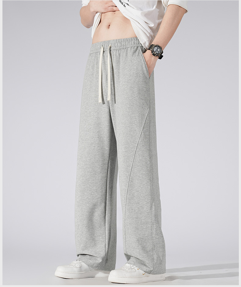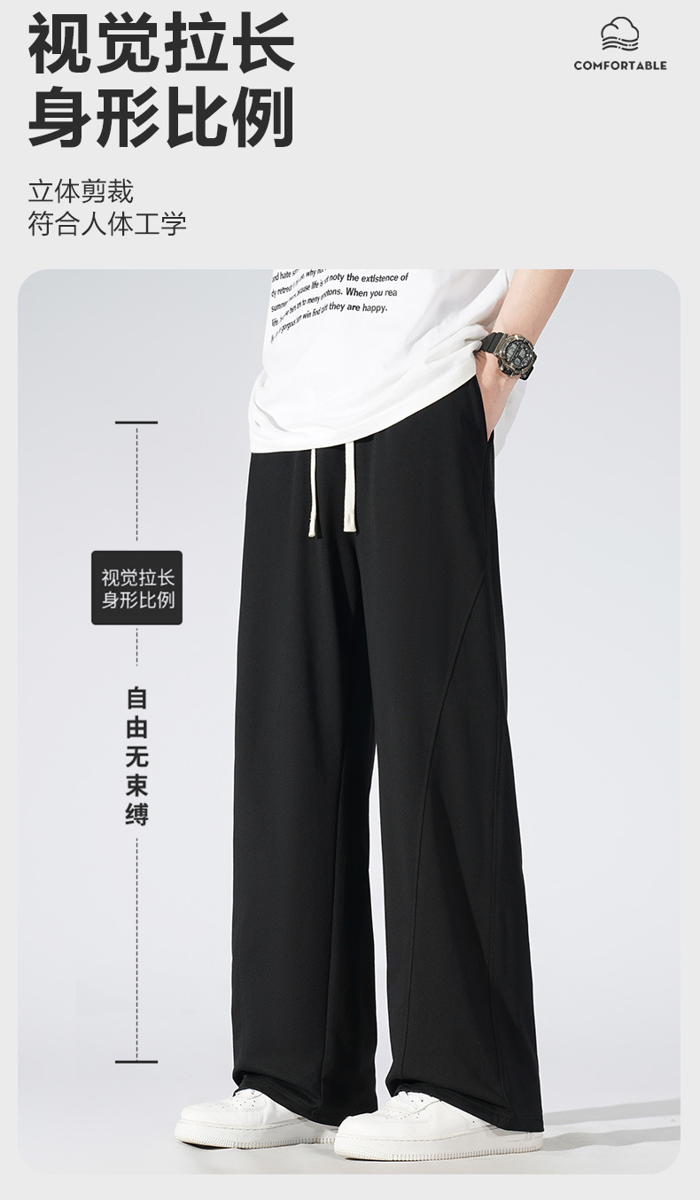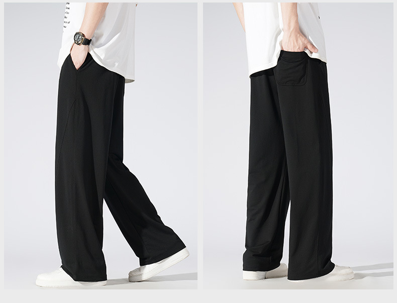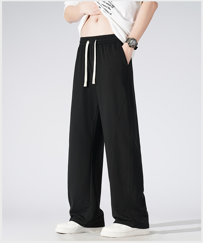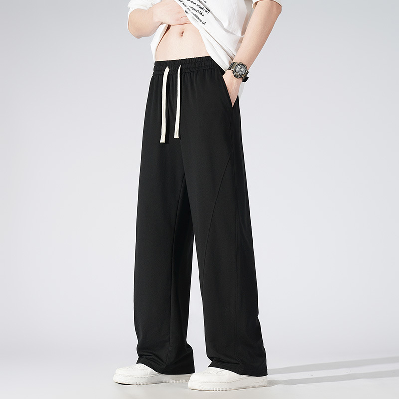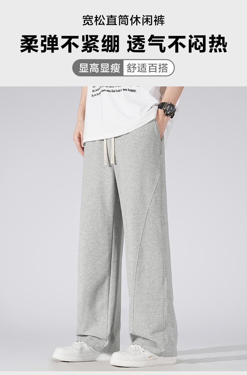 여름 남성 캐주얼 바지 얇은 루즈핏 스트레이트 트레이닝 팬츠 청년 스포츠 캐주얼 바지 남성 트렌디 와이드 팬츠