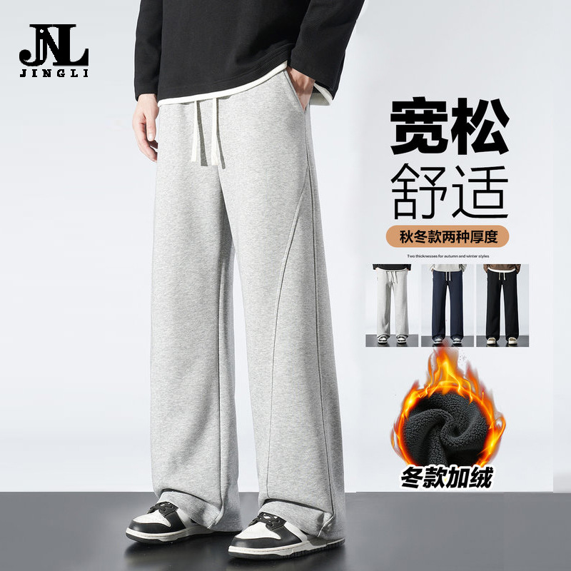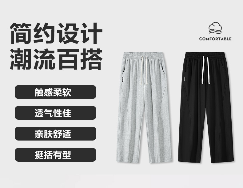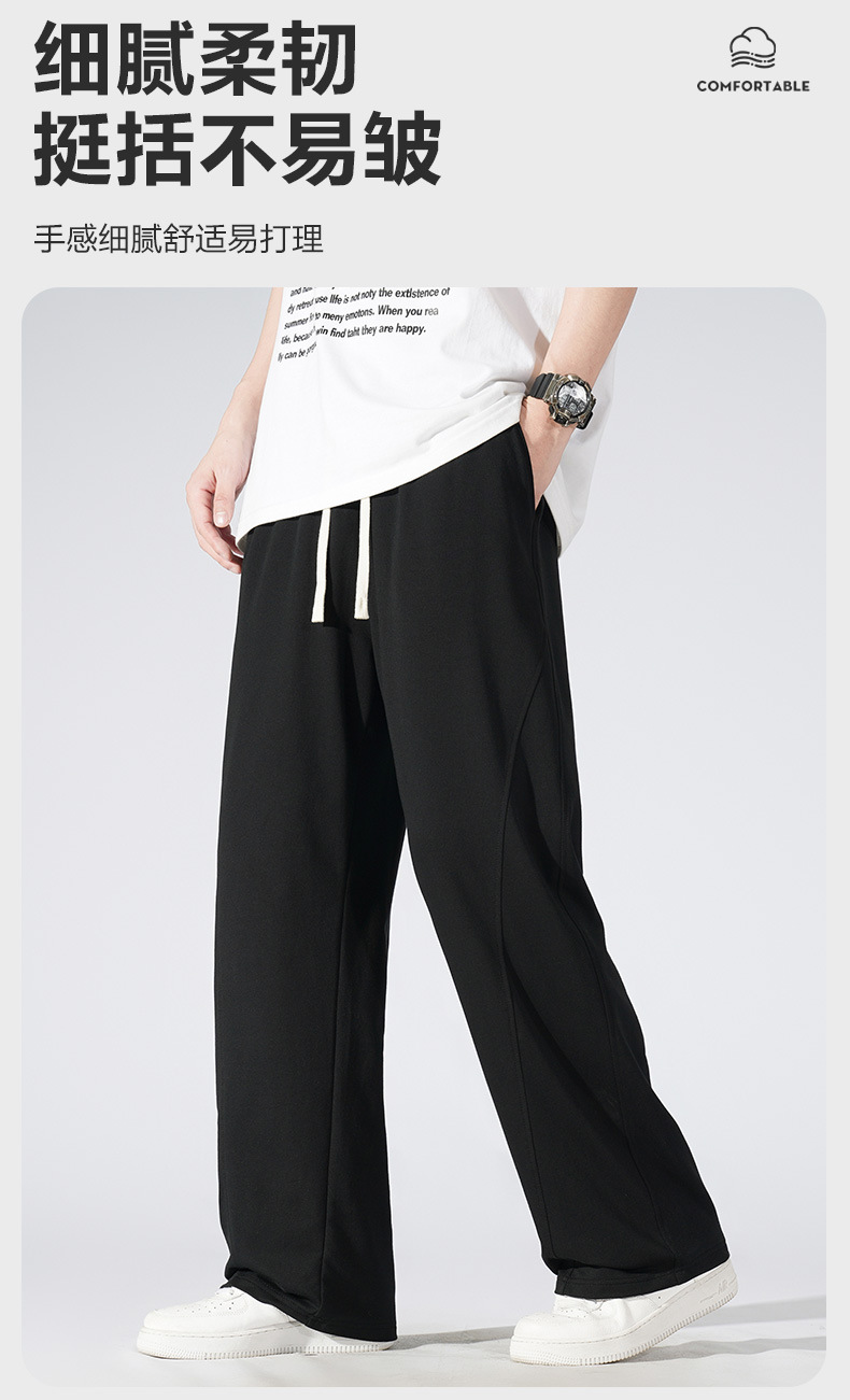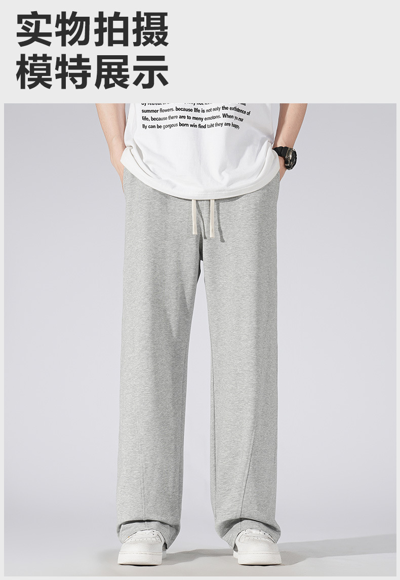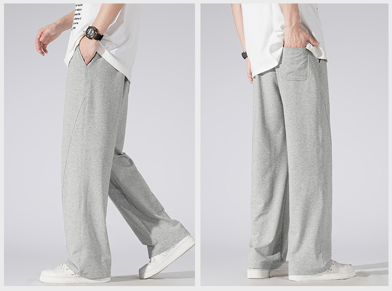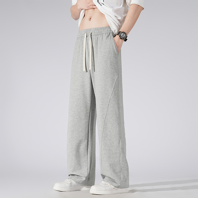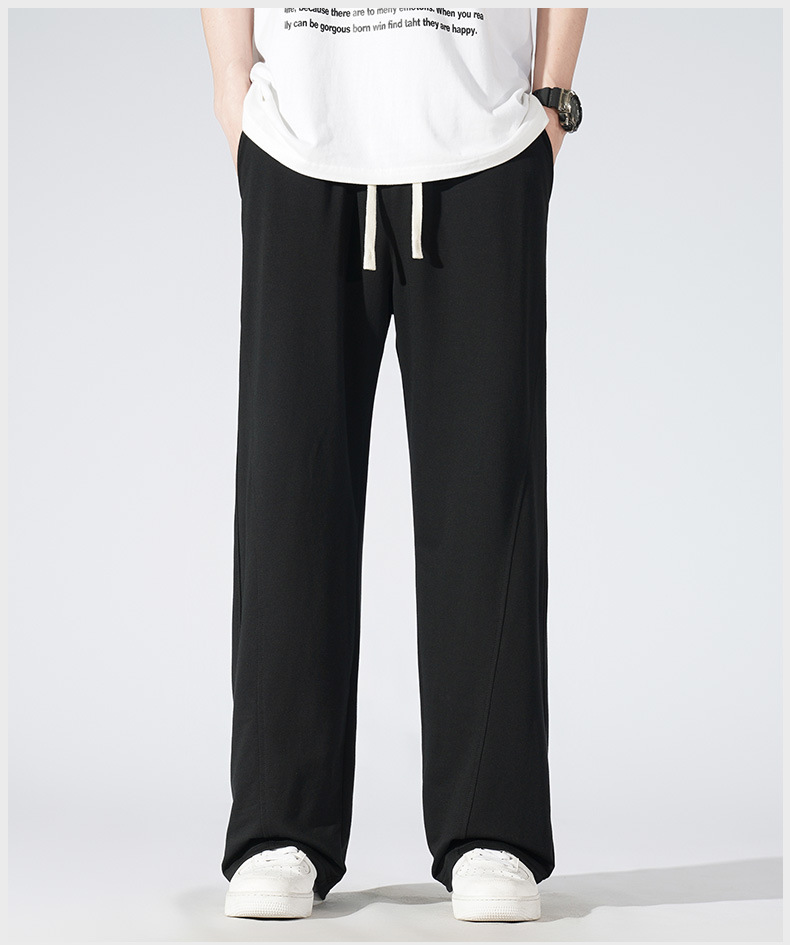 여름 남성 캐주얼 바지 얇은 루즈핏 스트레이트 트레이닝 팬츠 청년 스포츠 캐주얼 바지 남성 트렌디 와이드 팬츠