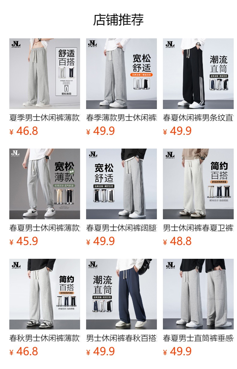 여름 남성 캐주얼 바지 얇은 루즈핏 스트레이트 트레이닝 팬츠 청년 스포츠 캐주얼 바지 남성 트렌디 와이드 팬츠스토어 가기