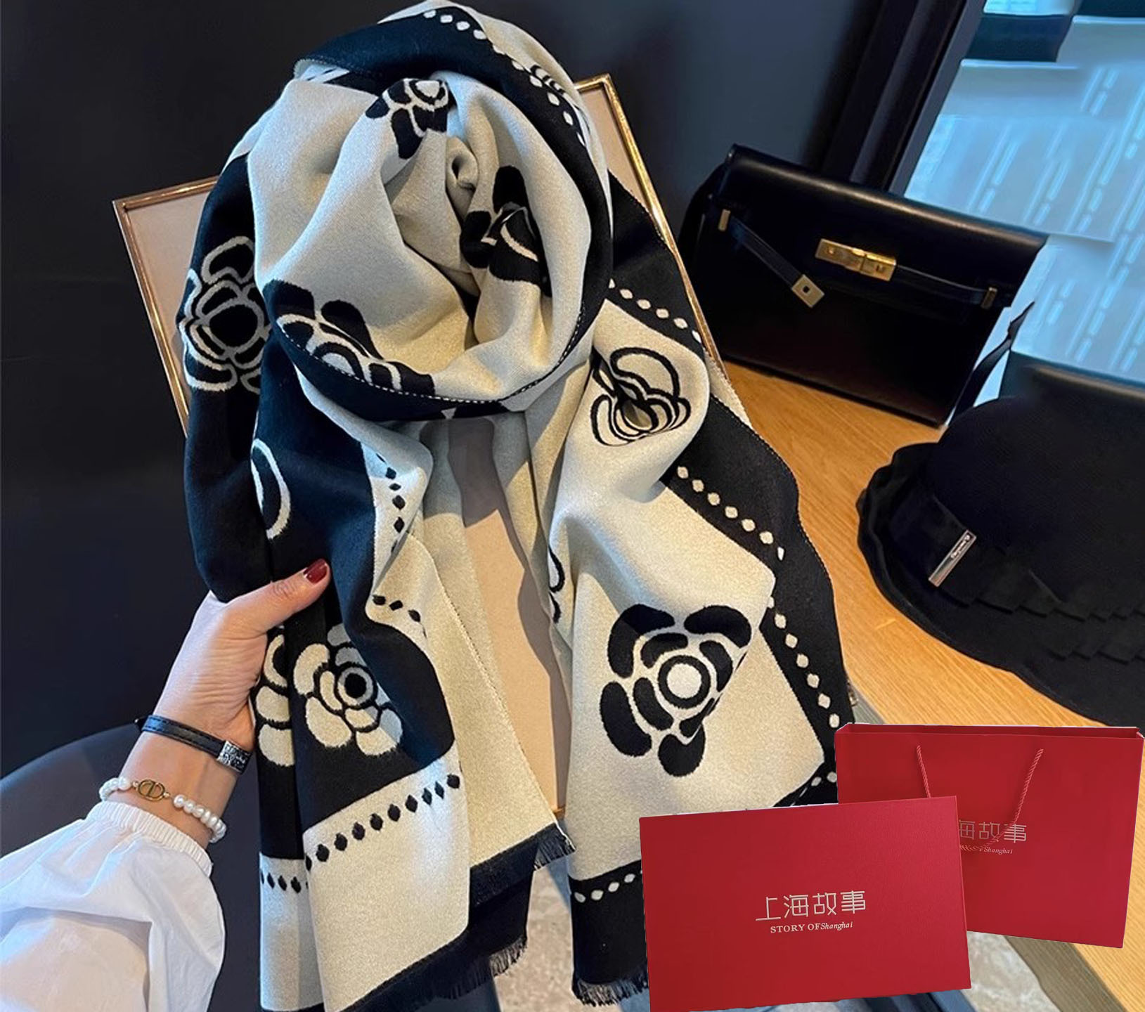 선물 상자 편지 인쇄 새 스타일 여성 스카프 겨울 여자 올 매치 따뜻한 커플 스카프 학생 선물 목도리스토어 가기
