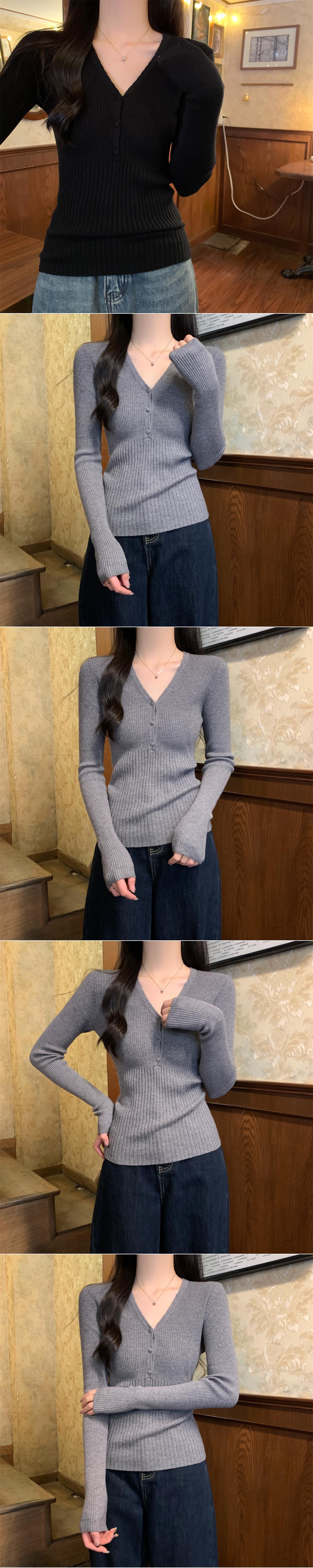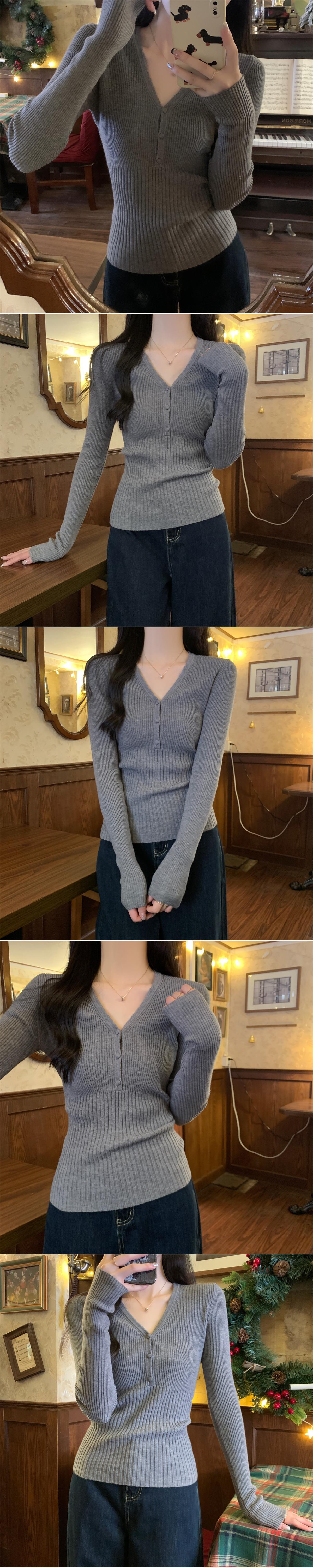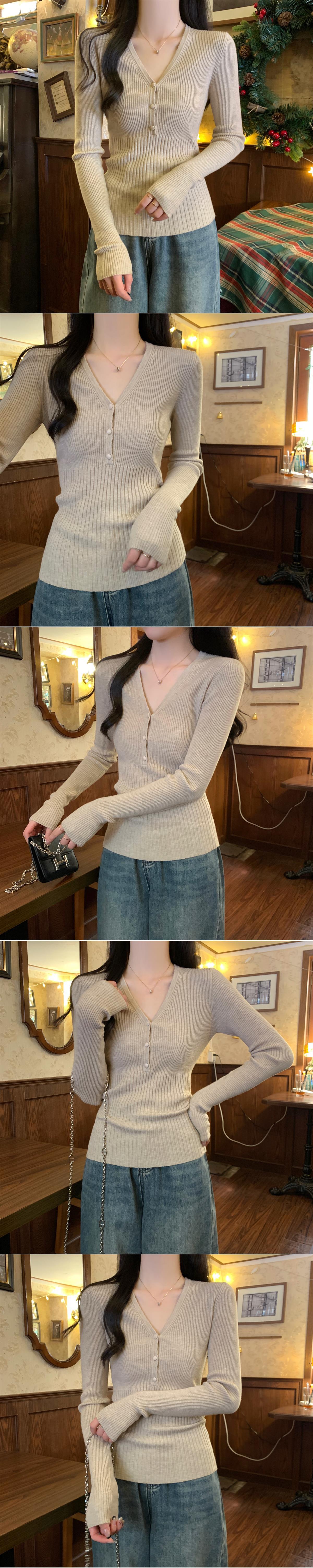 그레이 V 넥 바닥 스웨터 여성의 2025 년 새 봄과 가을 하이 엔드 센스 슬림 핏 패션 이너 긴팔 탑
