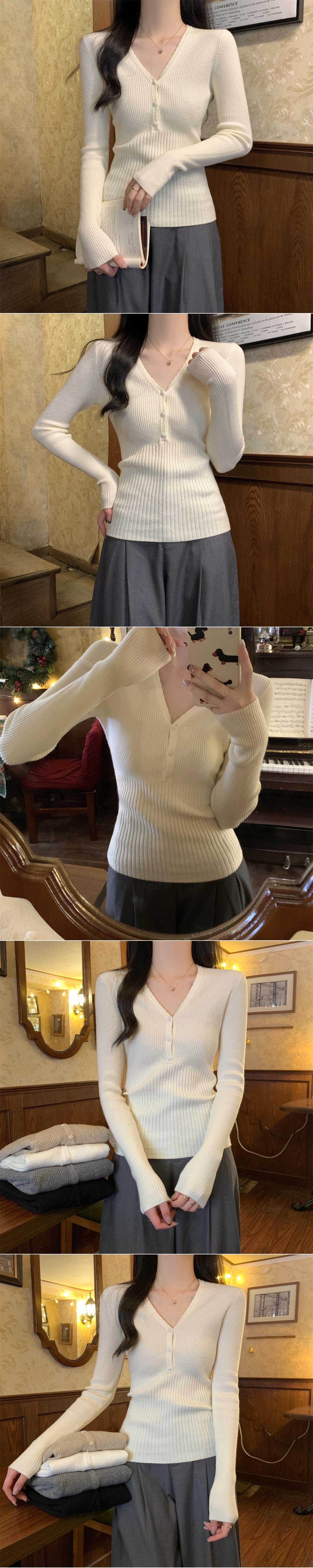 그레이 V 넥 바닥 스웨터 여성의 2025 년 새 봄과 가을 하이 엔드 센스 슬림 핏 패션 이너 긴팔 탑스토어 가기