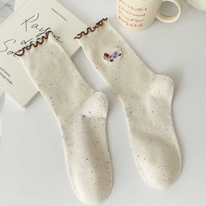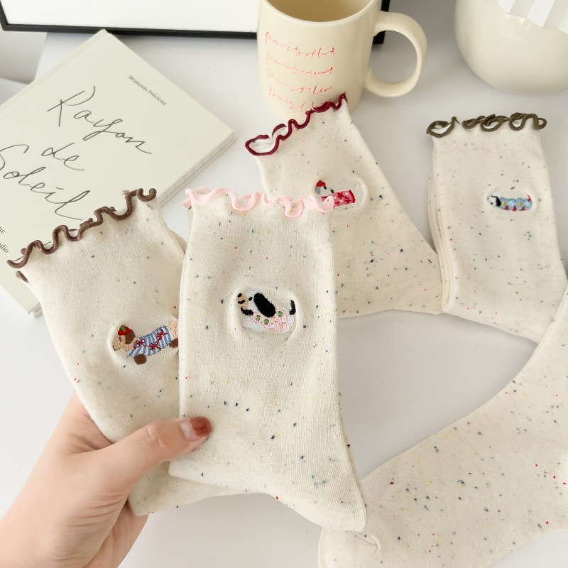 양말 여성의 가을과 겨울 Ins 트렌디 한 중간 길이의 양말 독특한 나무 귀 강아지 자수 포인트 원사 귀여운 더미 스타킹스토어 가기