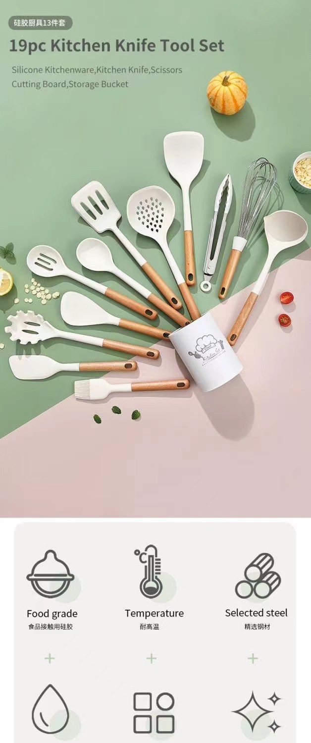 국경을 넘는 실리콘 주걱 13피스 식품 등급 실리콘 주방 용품 세트 고온 방지 붙지 않는 주방 용품 세트