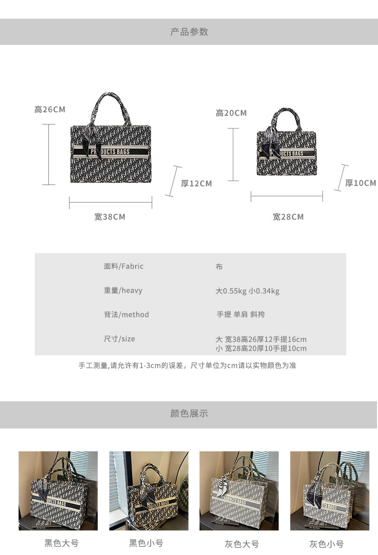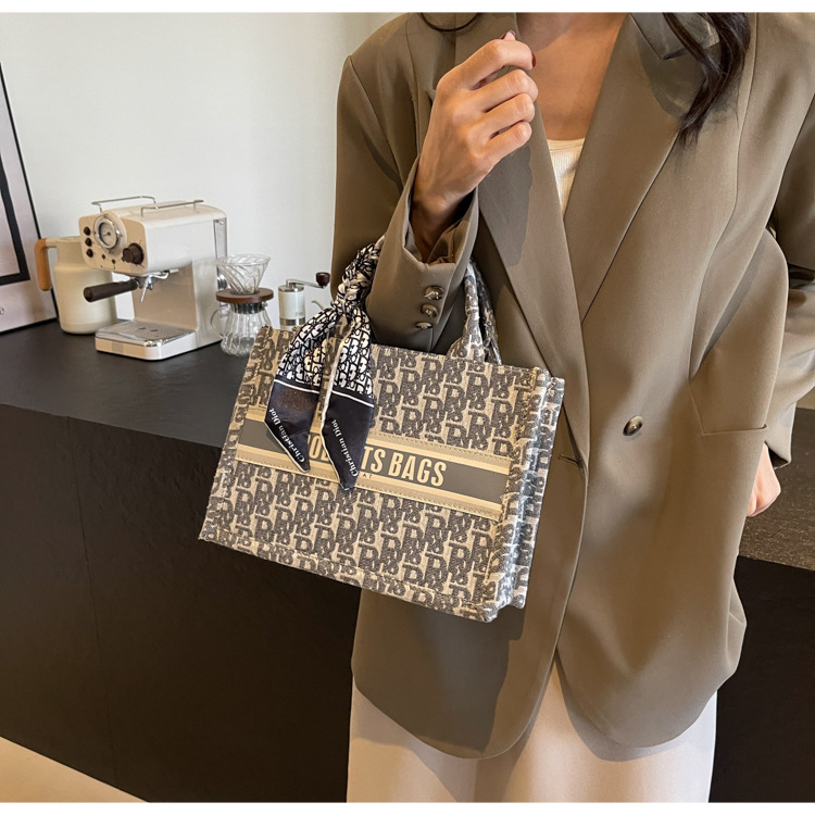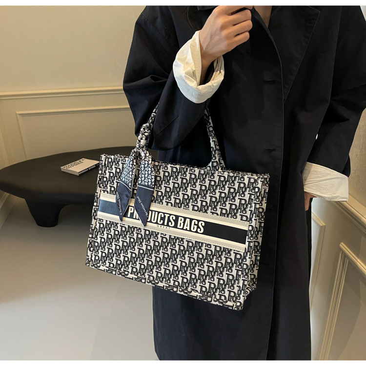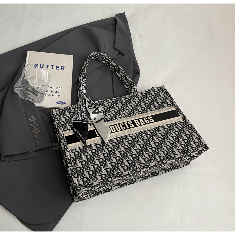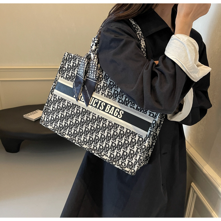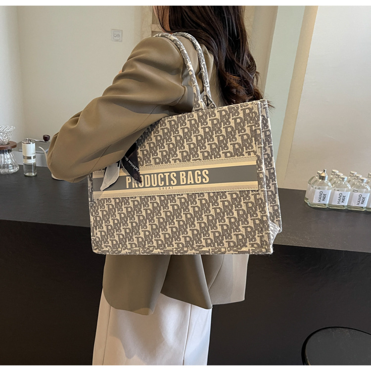 Baigou 도매 휴대용 토트 백 여성의 2024 새로운 유럽과 미국의 유행 인쇄 된 편지 대용량 어깨 가방스토어 가기