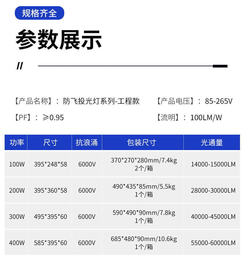 LED 비행 늑대 투광 조명 프로젝트 LED 비행 방지 투광 조명 두꺼운 소재 발 타일 야외 산업 워크샵 조명