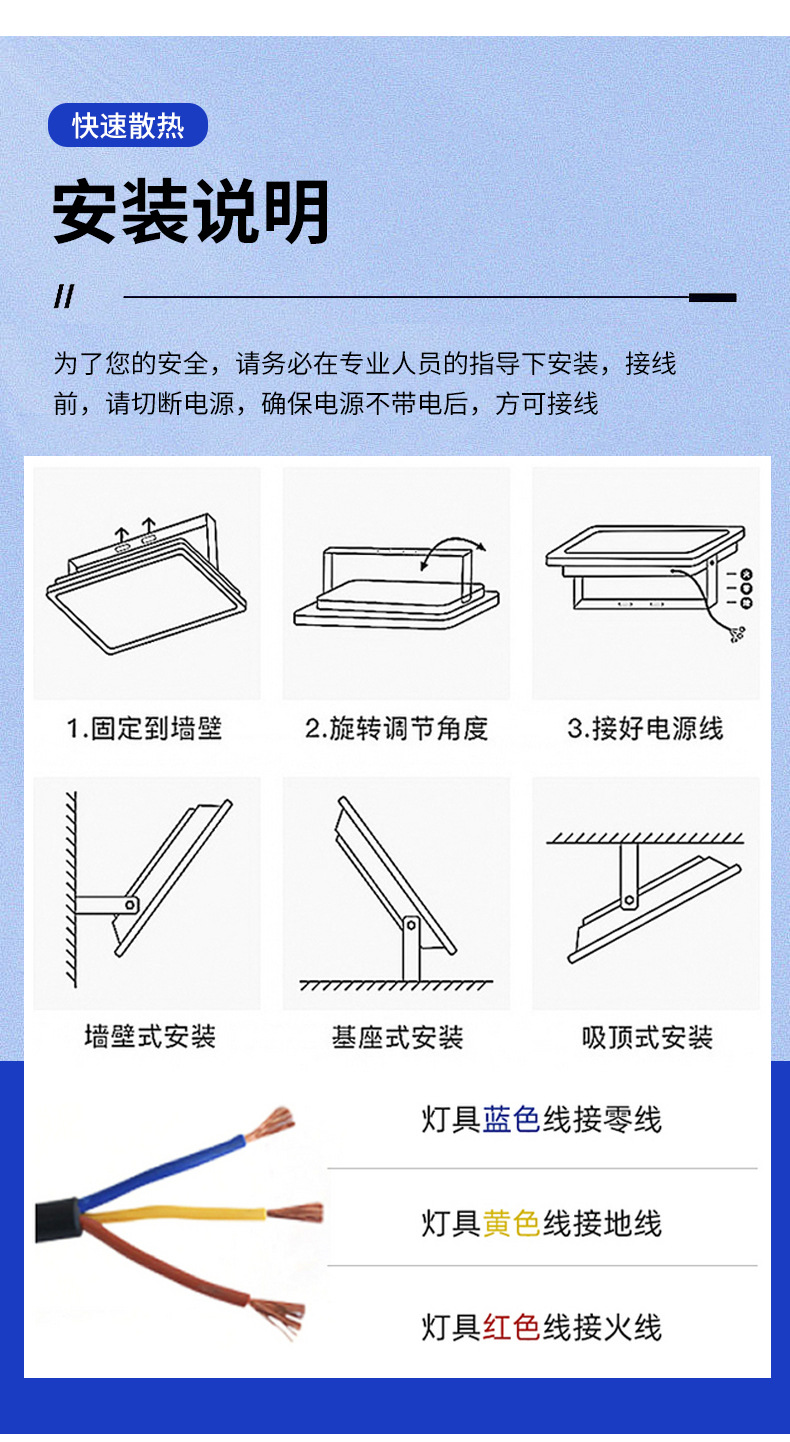 LED 비행 늑대 투광 조명 프로젝트 LED 비행 방지 투광 조명 두꺼운 소재 발 타일 야외 산업 워크샵 조명스토어 가기