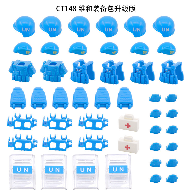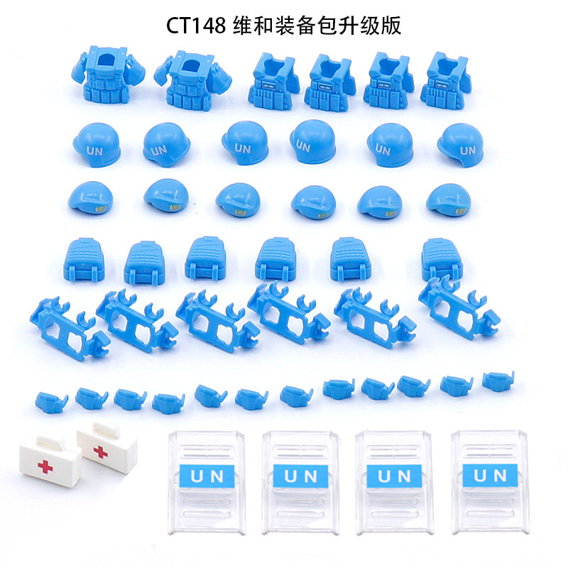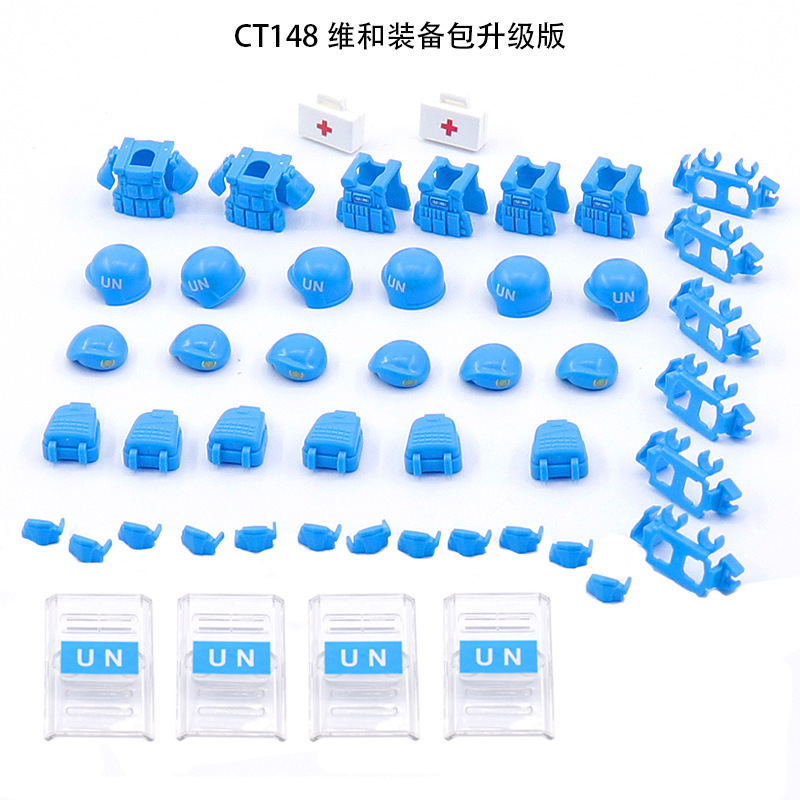 국경 간 AliExpress 평화 유지군 남성과 어린이는 장비 가방 베레모 방탄 조끼 군용 소형 입자 빌딩 블록을 착용합니다.스토어 가기