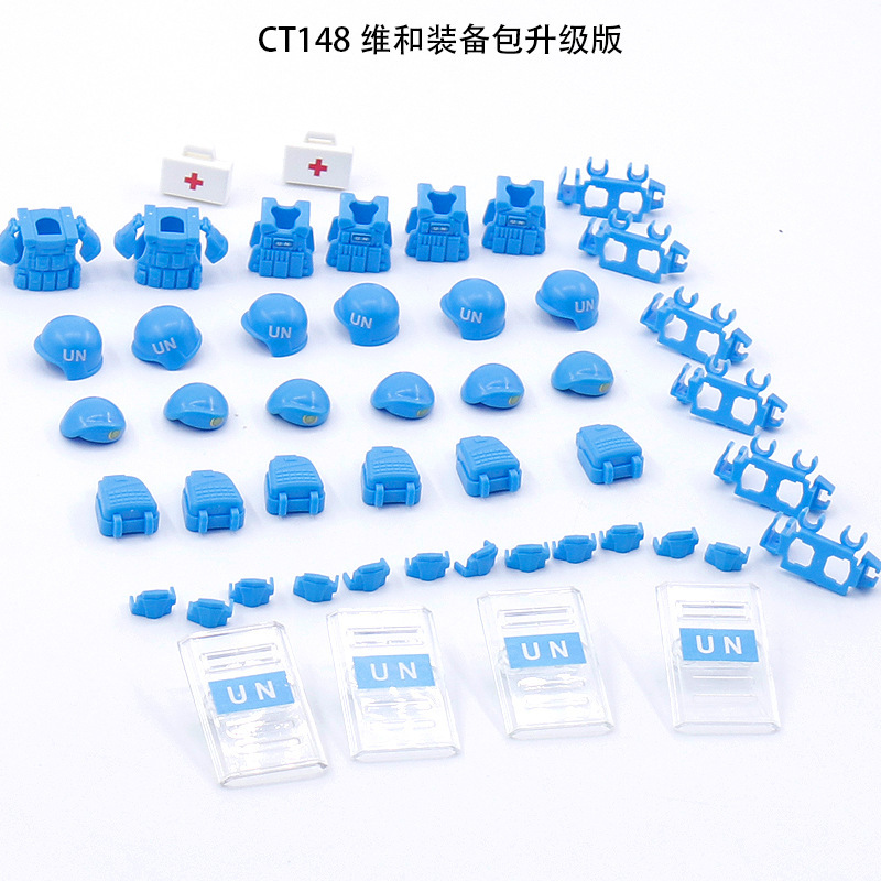 국경 간 AliExpress 평화 유지군 남성과 어린이는 장비 가방 베레모 방탄 조끼 군용 소형 입자 빌딩 블록을 착용합니다.