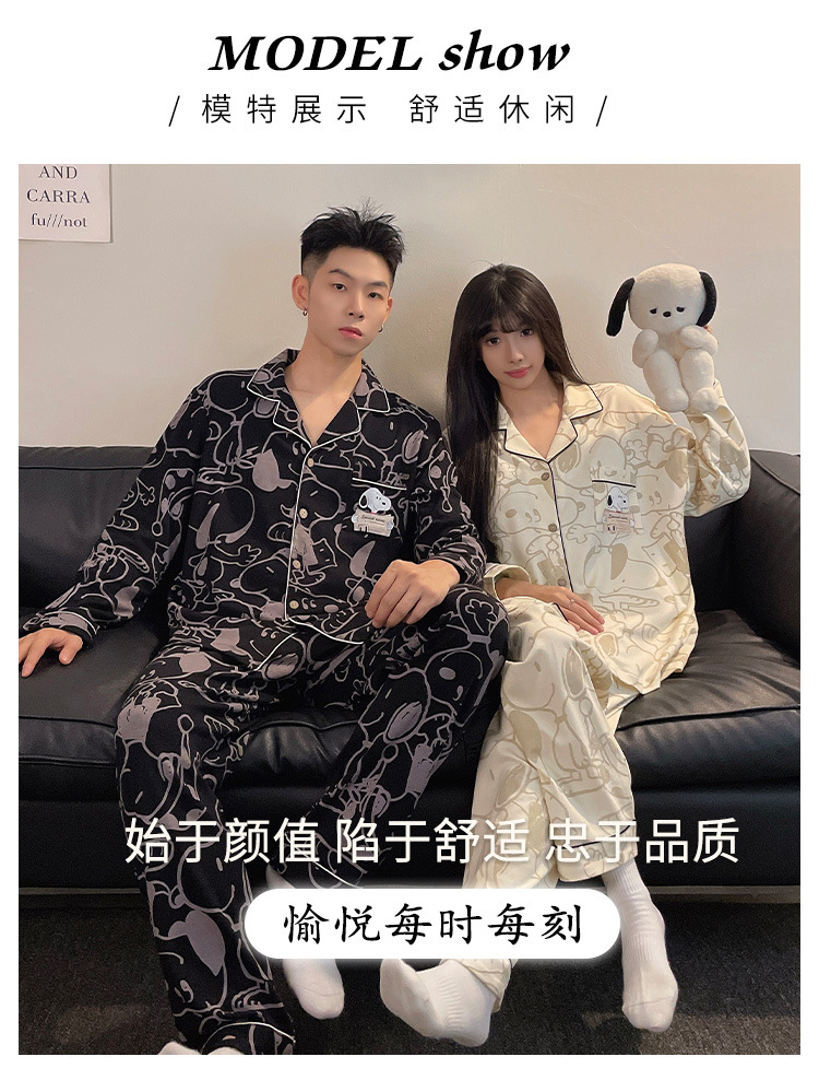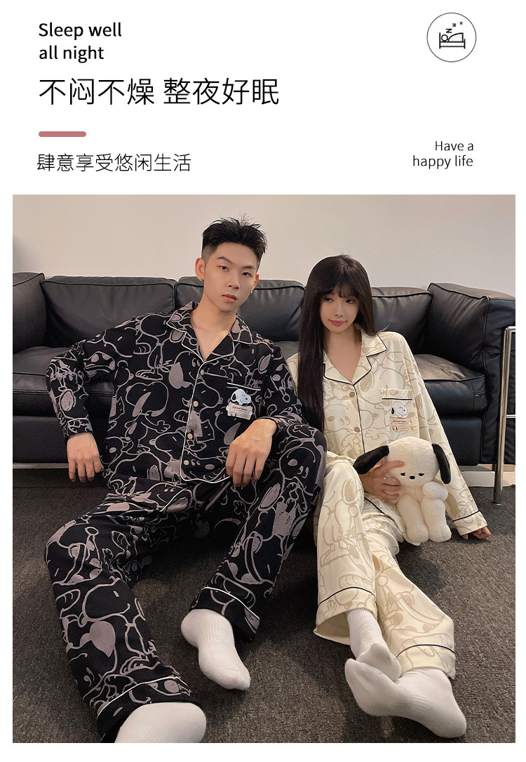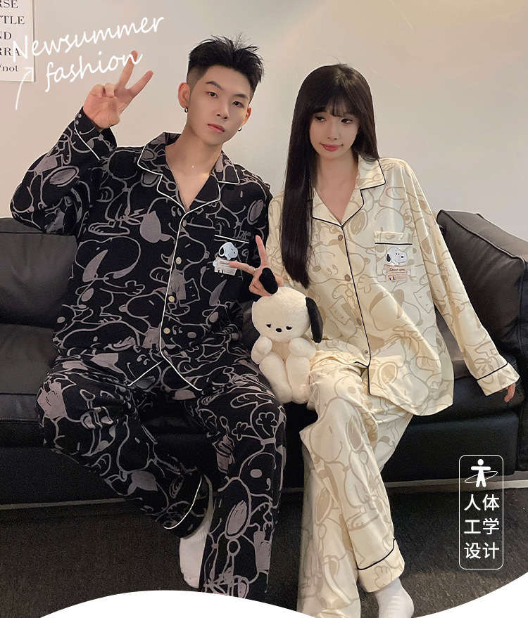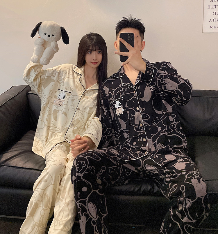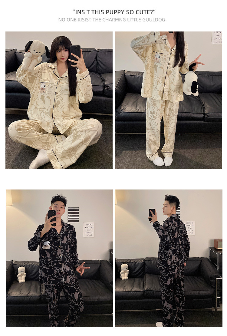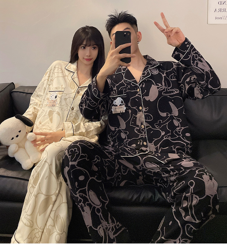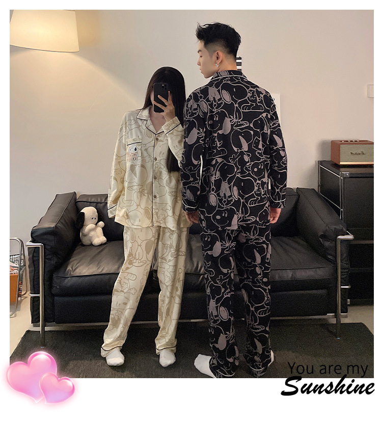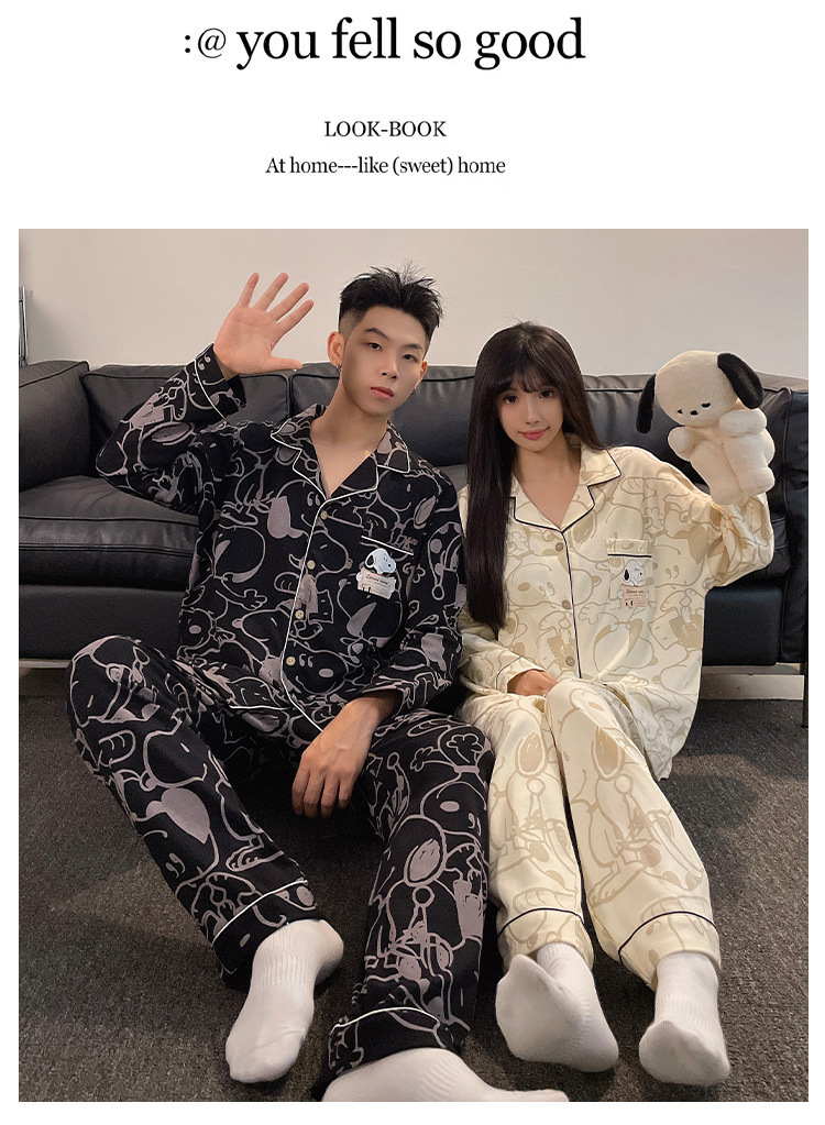 봄과 가을 새 커플 잠옷 여성용 긴 소매 카디건 편안한 홈 의류 남성 느슨한 커플 캐주얼 가을과 겨울 세트