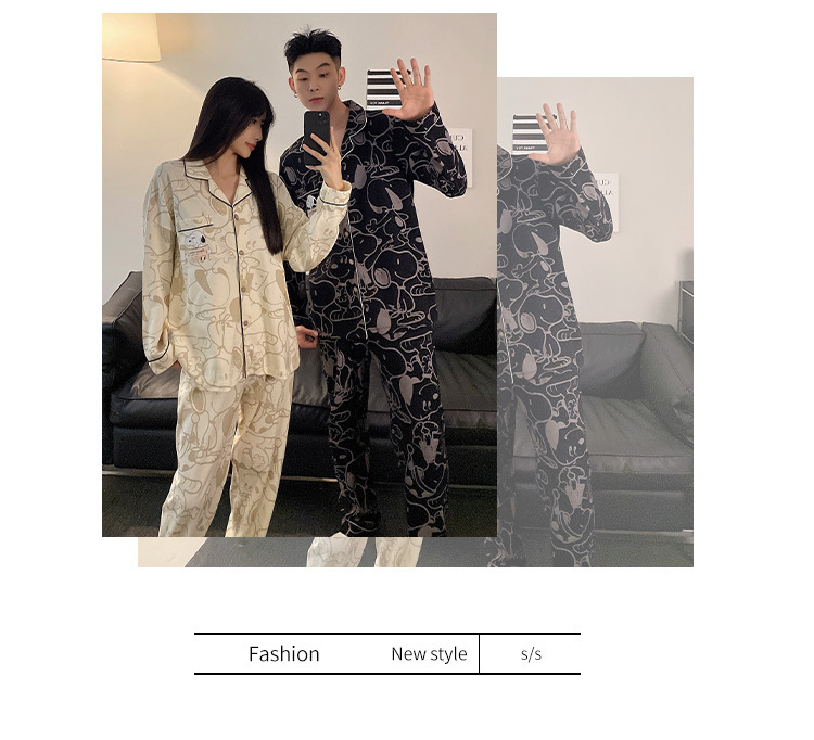 봄과 가을 새 커플 잠옷 여성용 긴 소매 카디건 편안한 홈 의류 남성 느슨한 커플 캐주얼 가을과 겨울 세트스토어 가기
