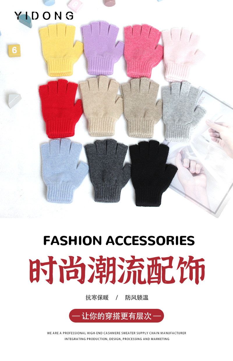 7 스티치 일반 캐시미어 니트 따뜻한 방한 반 손가락 장갑은 스트레치 실크 장갑으로 어린이 그릇 입을 두껍게 만들었습니다.
