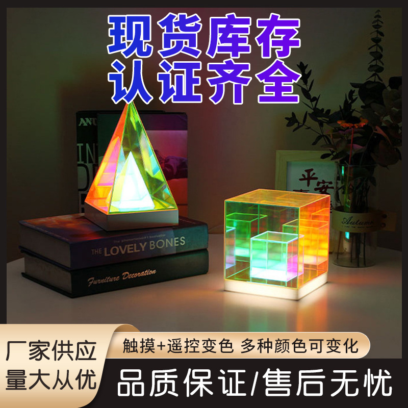 跨境创意卧室氛围灯电竞魔方立体三角金字塔装饰台灯高级感小夜灯
