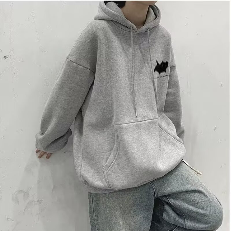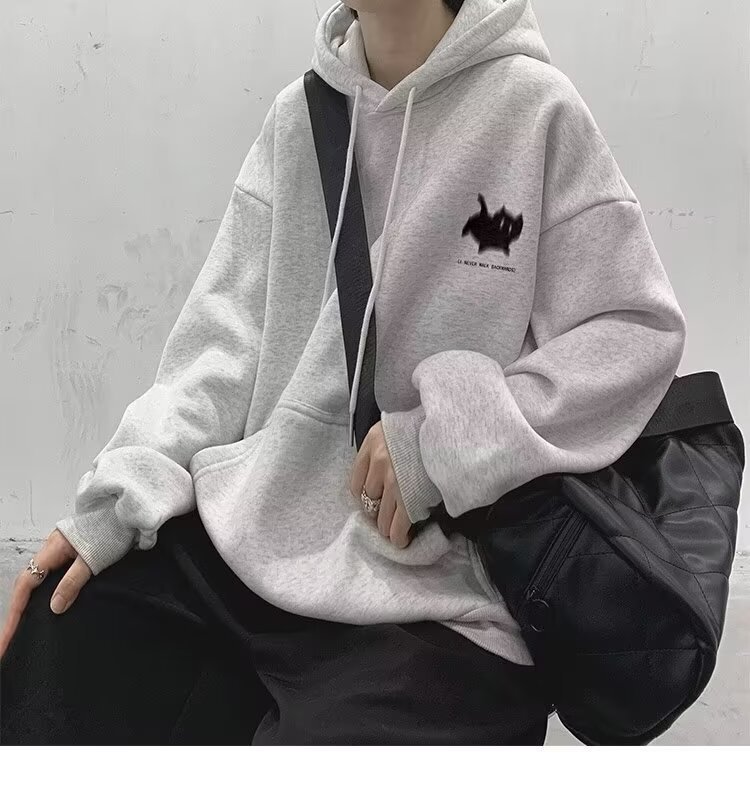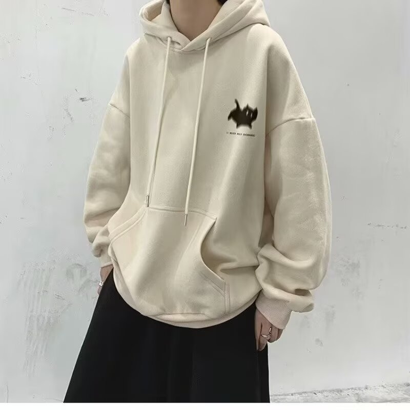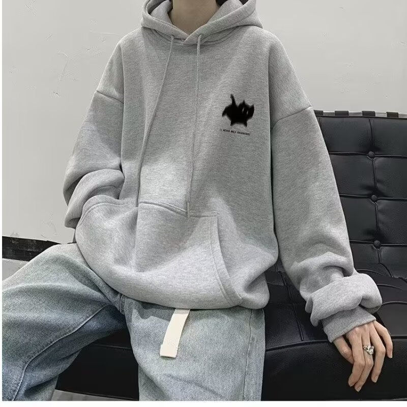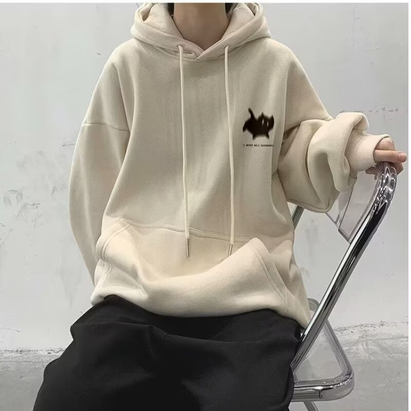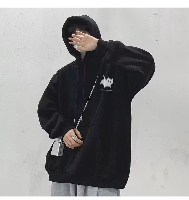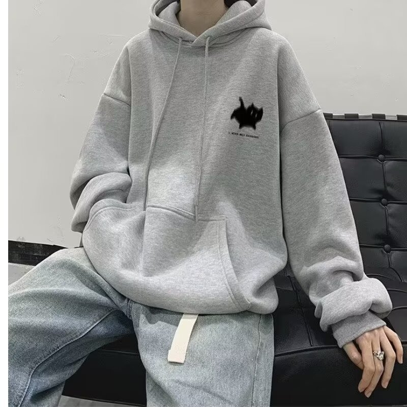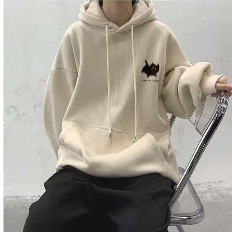 남성용 스웨트 셔츠 새로운 홍콩 스타일 미국 복고풍 후드 남성 봄, 가을 유행 브랜드 루즈하고 다재다능한 벨벳 스웨트 셔츠 남성용스토어 가기
