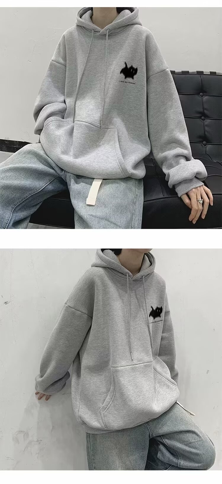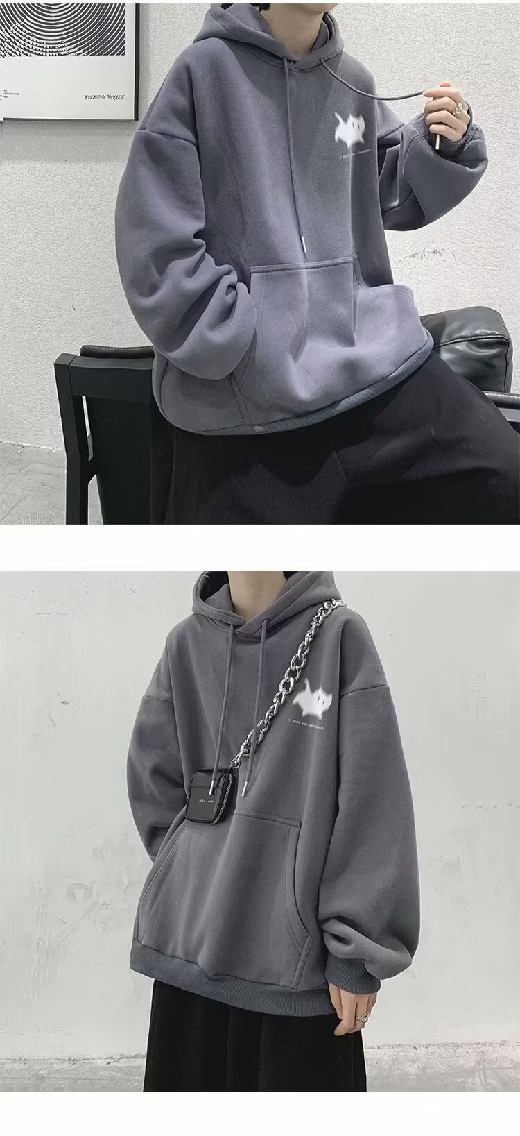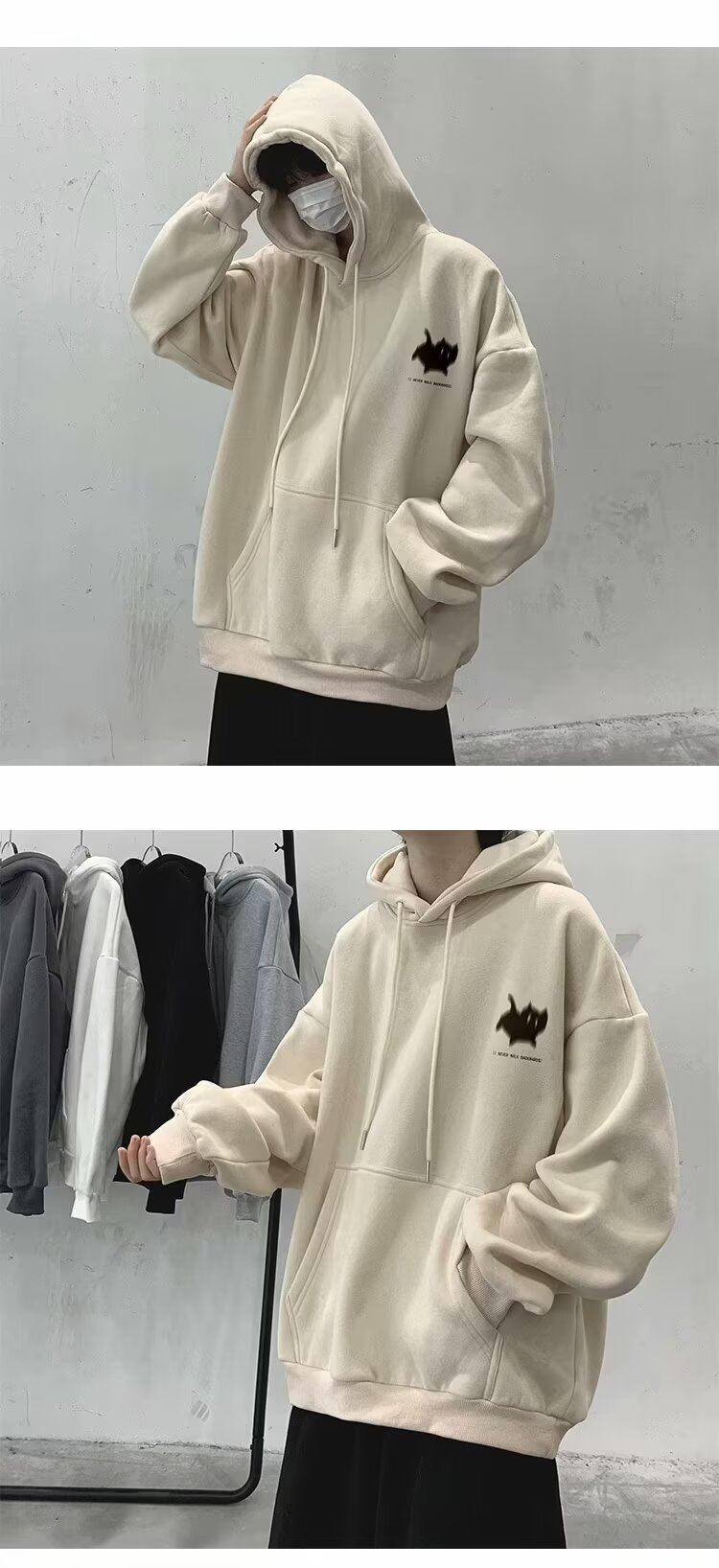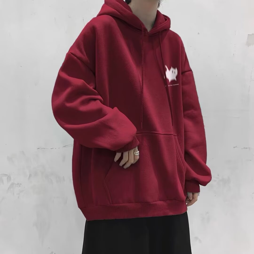 남성용 스웨트 셔츠 새로운 홍콩 스타일 미국 복고풍 후드 남성 봄, 가을 유행 브랜드 루즈하고 다재다능한 벨벳 스웨트 셔츠 남성용스토어 가기