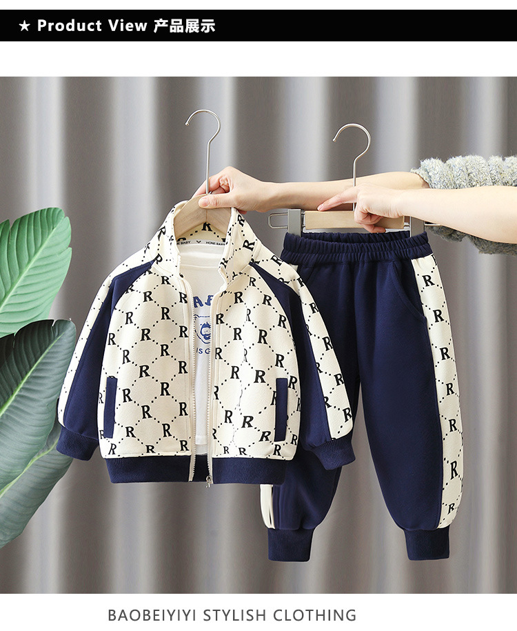 6156 소년 스포츠 세트 2024 봄과 가을 새로운 러피 잘 생긴 아기 패션 가을 어린이 조수 브랜드 투피스 세트스토어 가기