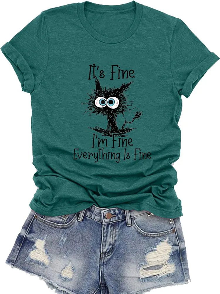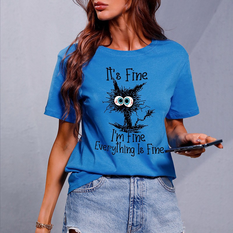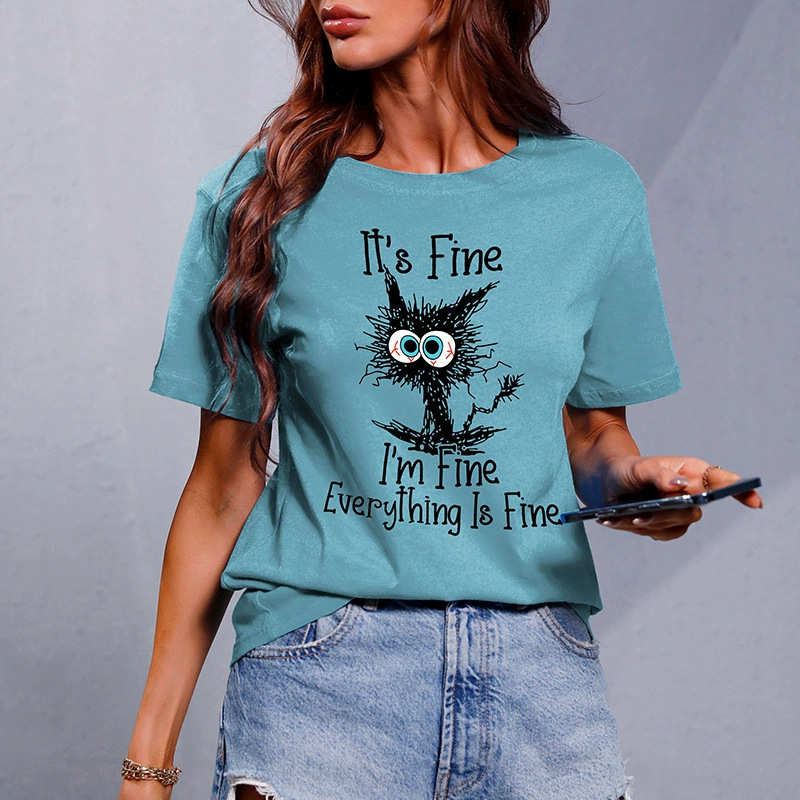 대외 무역 여성 최고 국경 전자 상거래 아마존 고양이 인쇄 반팔 티셔츠