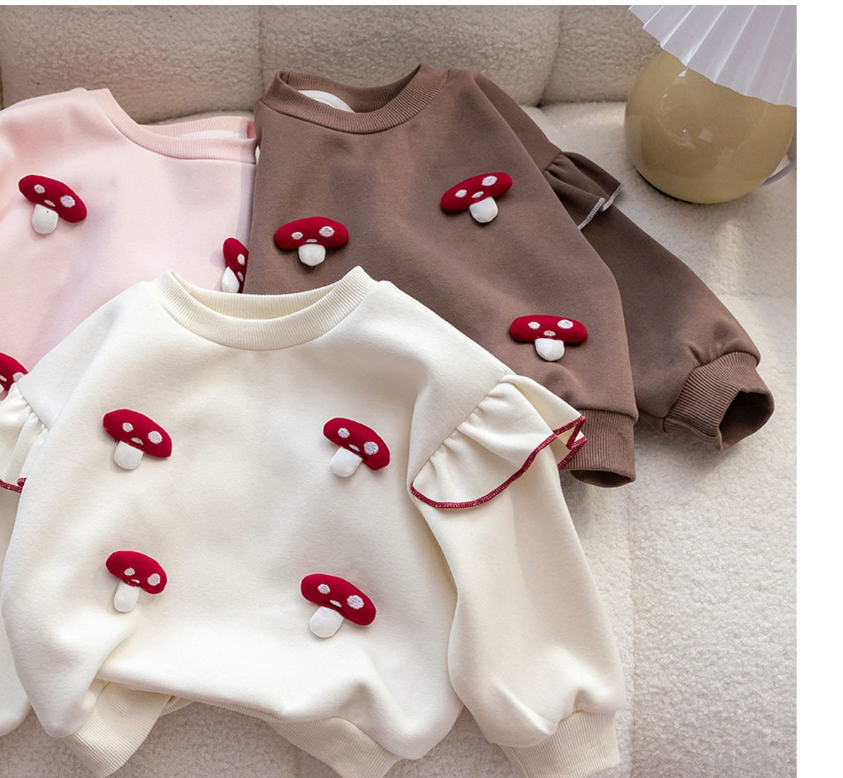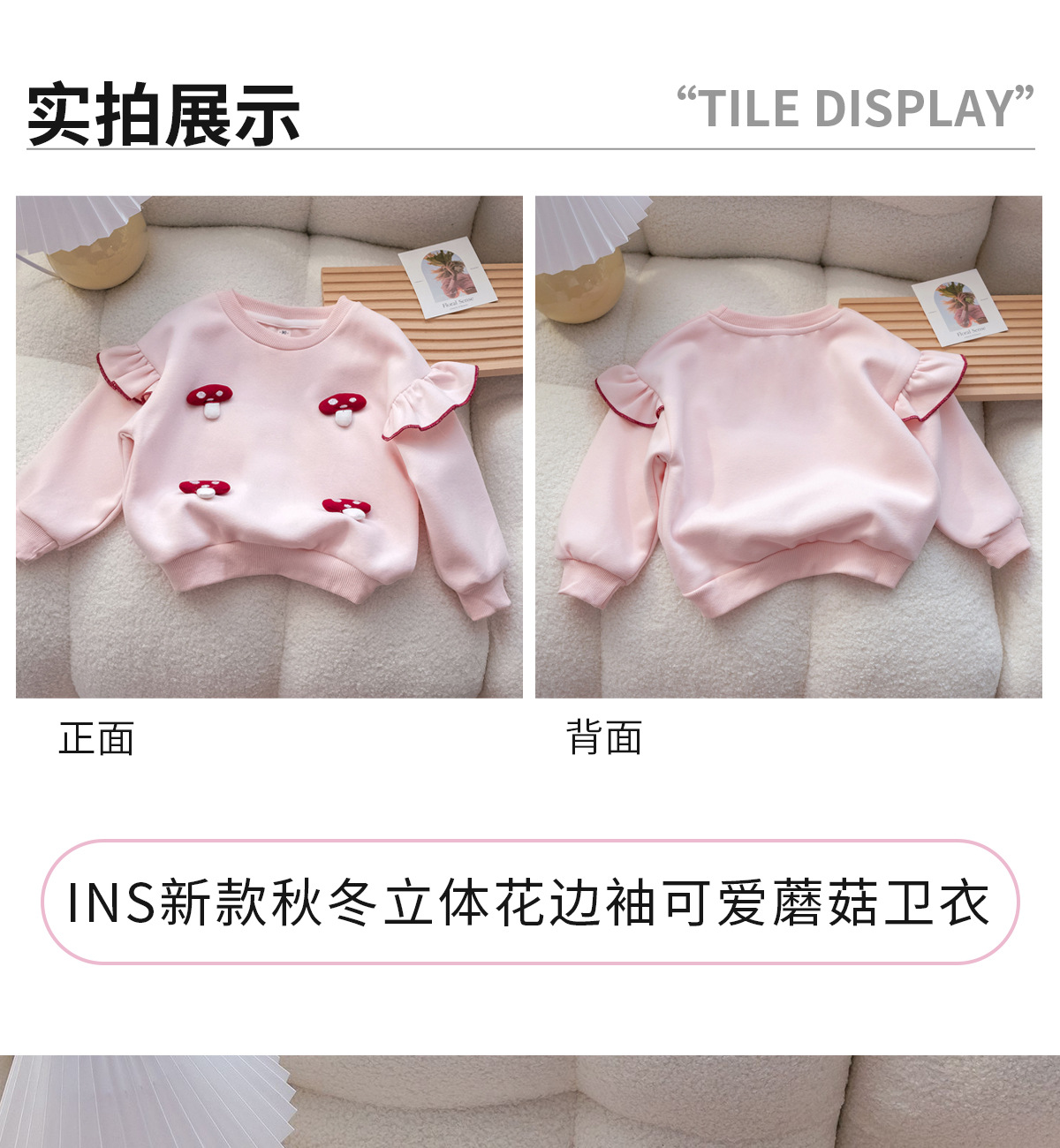 가을 새로운 소녀 레이스 소매 3 차원 장식 작은 버섯 스타일 스웨터 어린이 만화 긴 소매 유행 한국 스타일스토어 가기