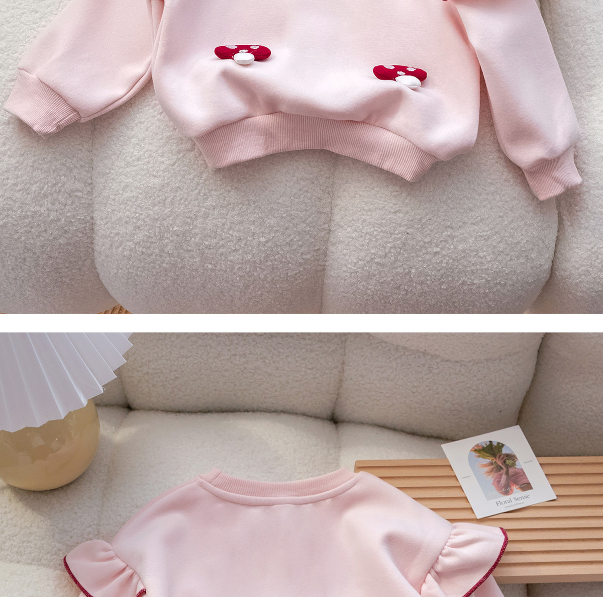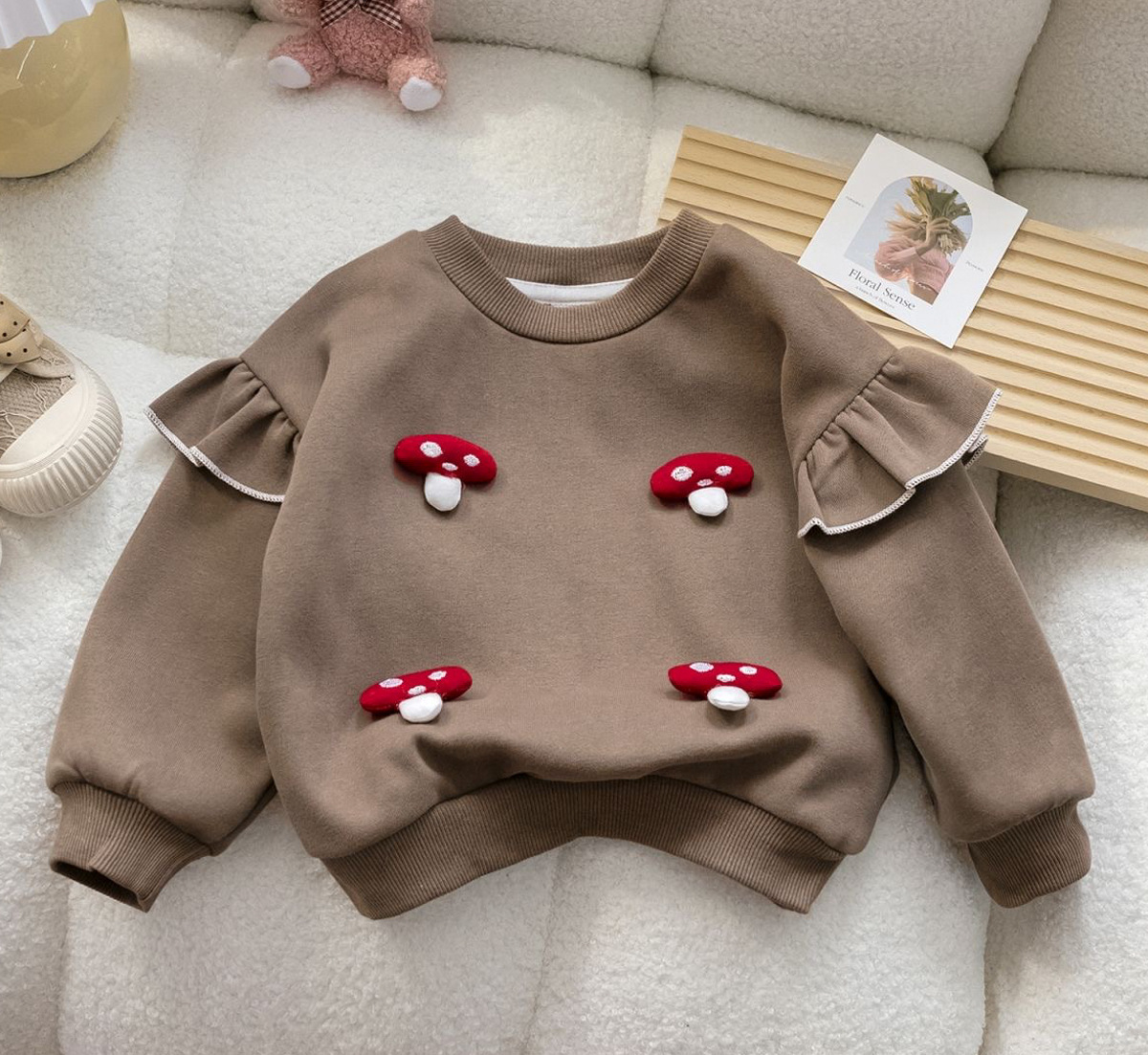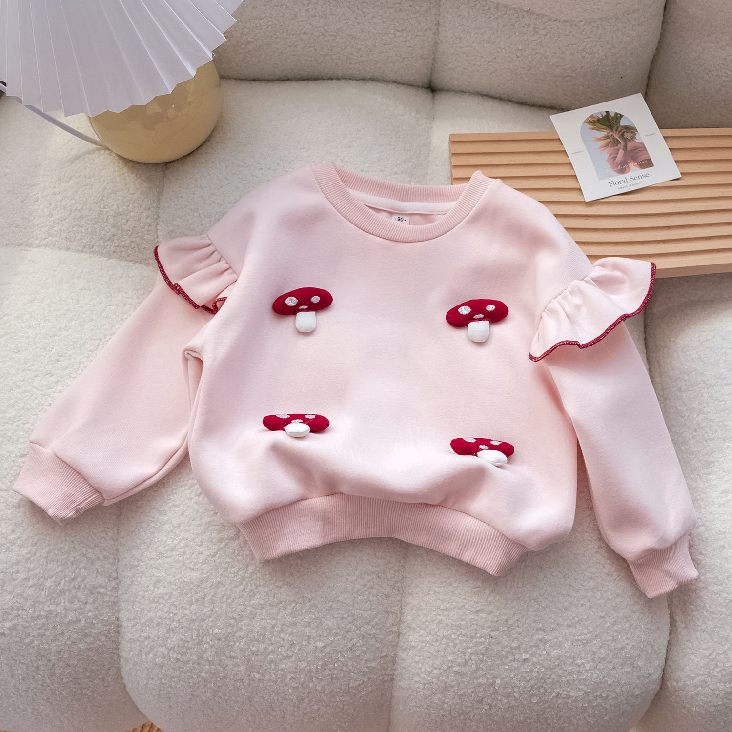 가을 새로운 소녀 레이스 소매 3 차원 장식 작은 버섯 스타일 스웨터 어린이 만화 긴 소매 유행 한국 스타일