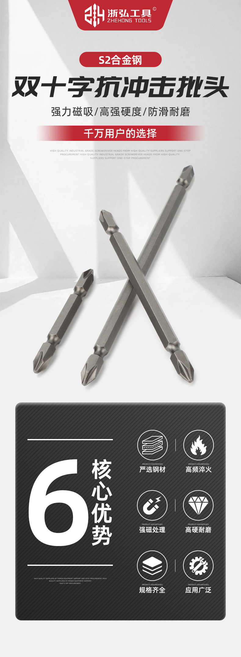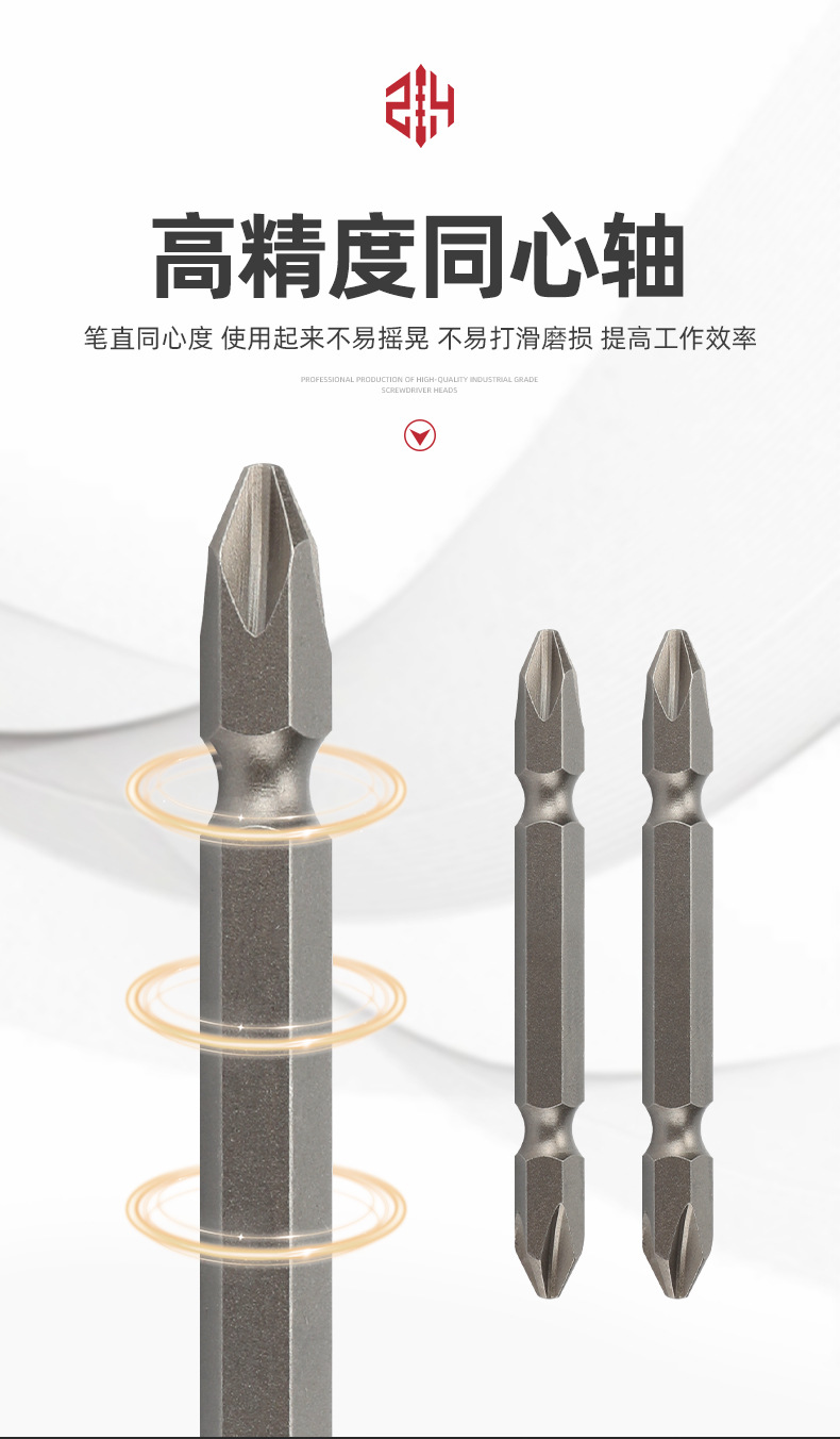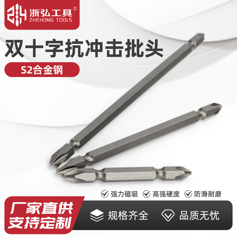 S2 소재 샌드 블라스팅 더블 크로스 고강도 배치 헤드 강한 자기 비 슬립 전기 드라이버 스크루 드라이버 헤드 더블 마그네틱 링
