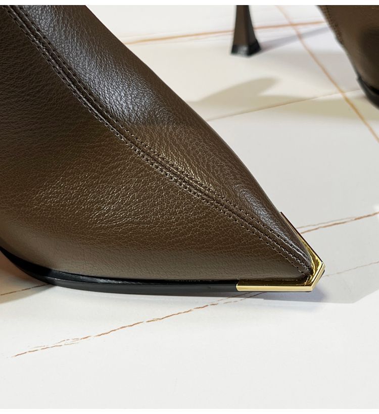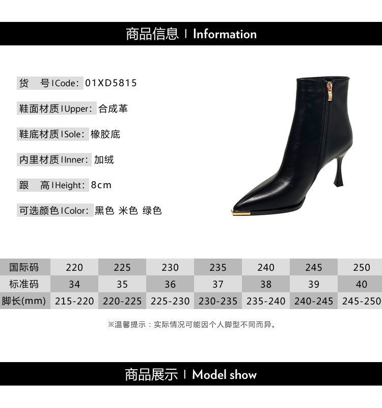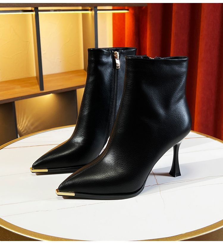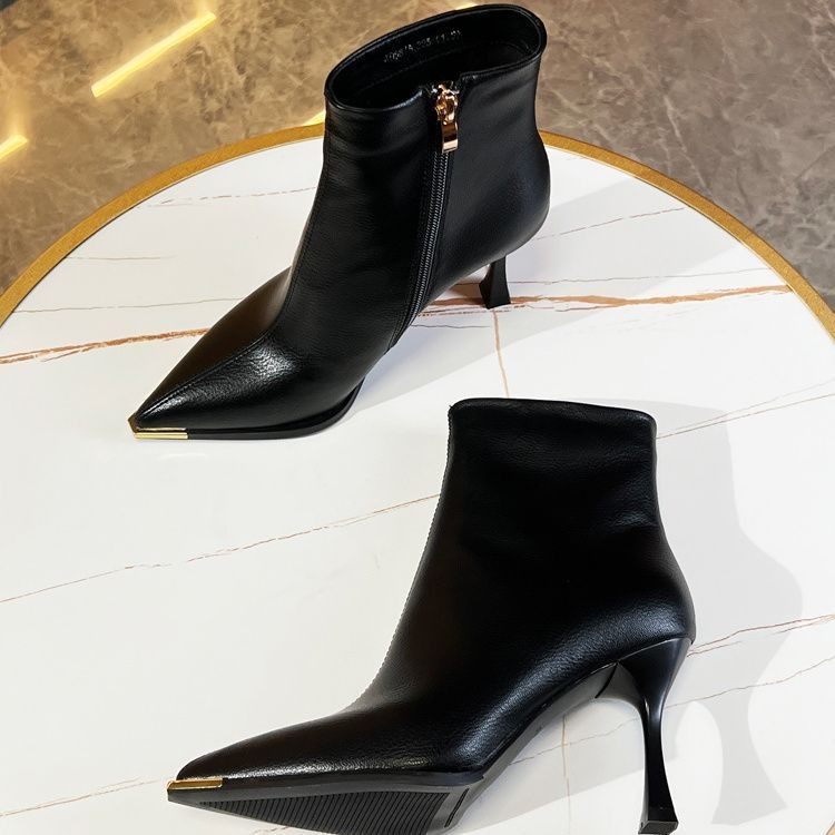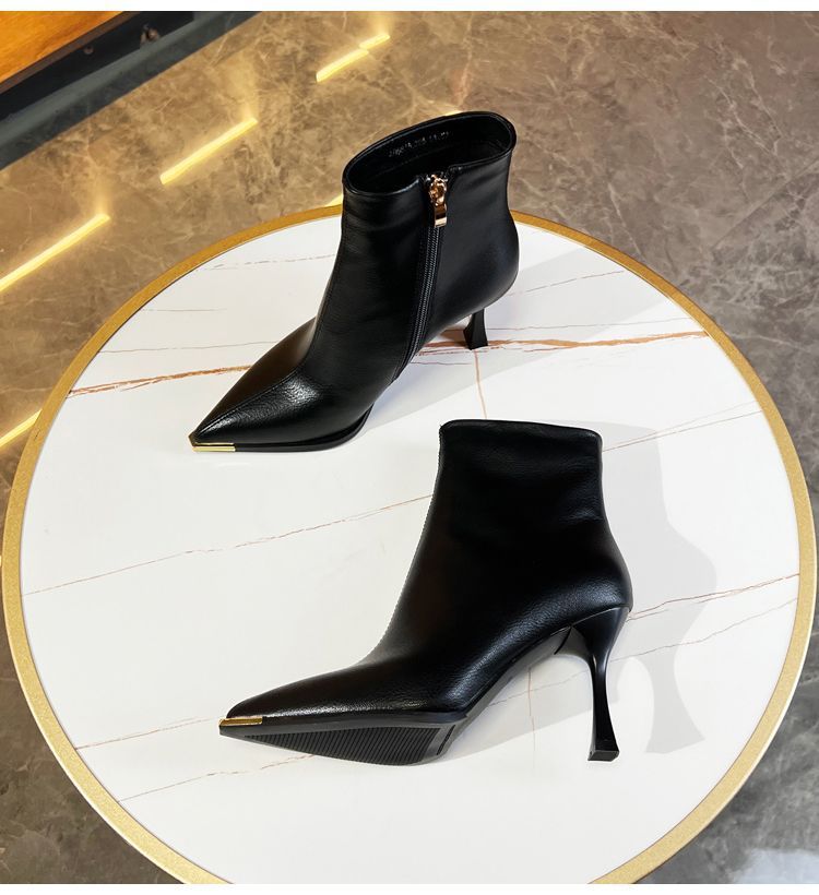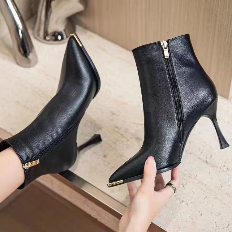 뾰족한 얇은 뒤꿈치 발목 부츠 여성 가을 겨울 2023 새로운 우아한 올 매치 얇은 부츠 가을 새로운 하이힐 패션 부츠스토어 가기