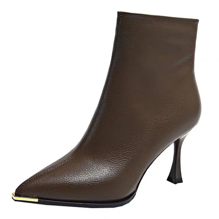 뾰족한 얇은 뒤꿈치 발목 부츠 여성 가을 겨울 2023 새로운 우아한 올 매치 얇은 부츠 가을 새로운 하이힐 패션 부츠