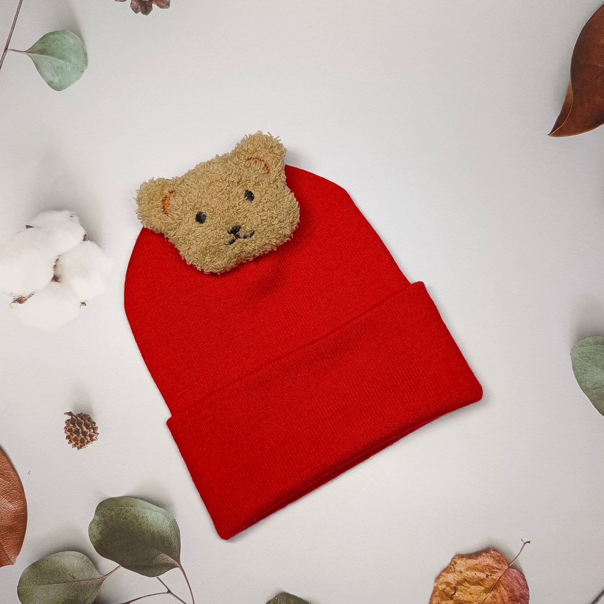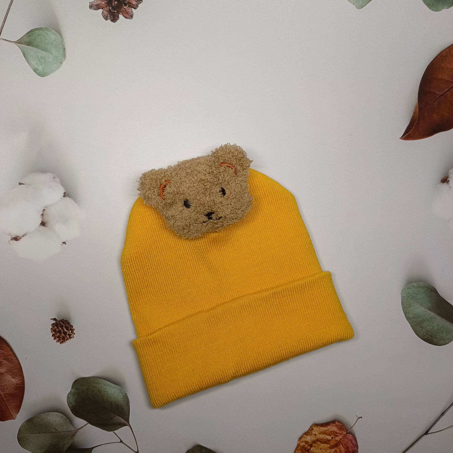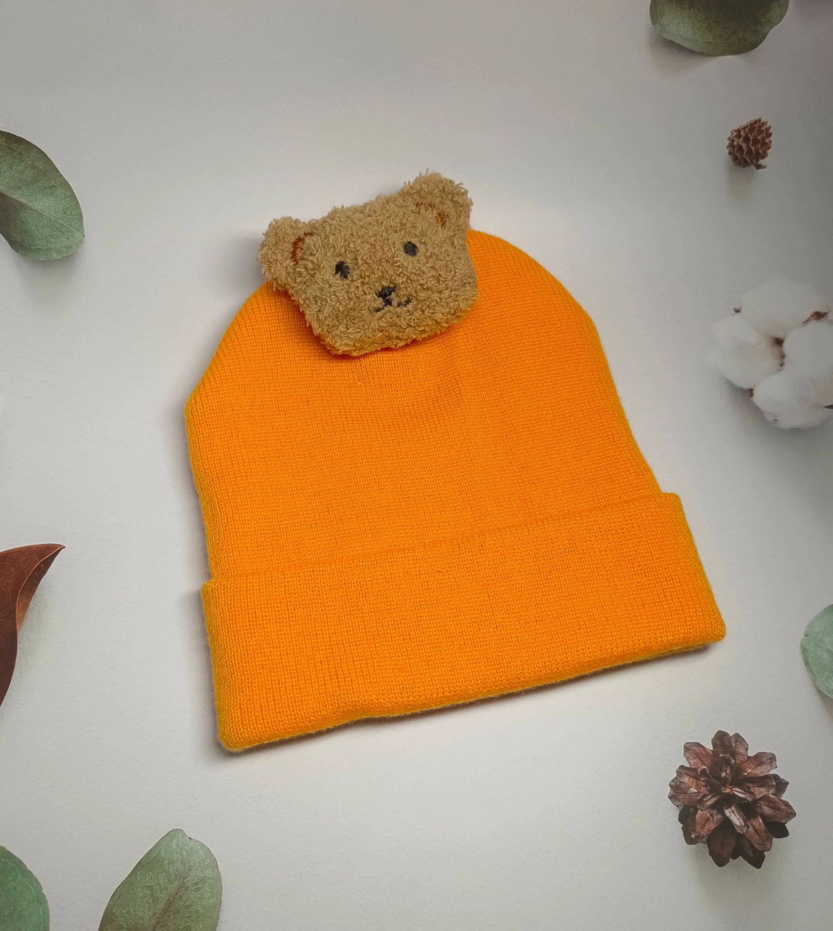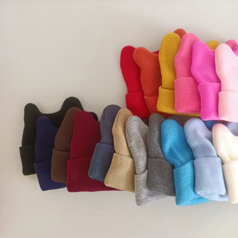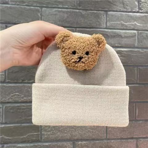 Ins 한국 아기 양모 모자 가을과 겨울 곰 귀여운 아기 어린이 귀 보호 따뜻한 니트 모자 패션
