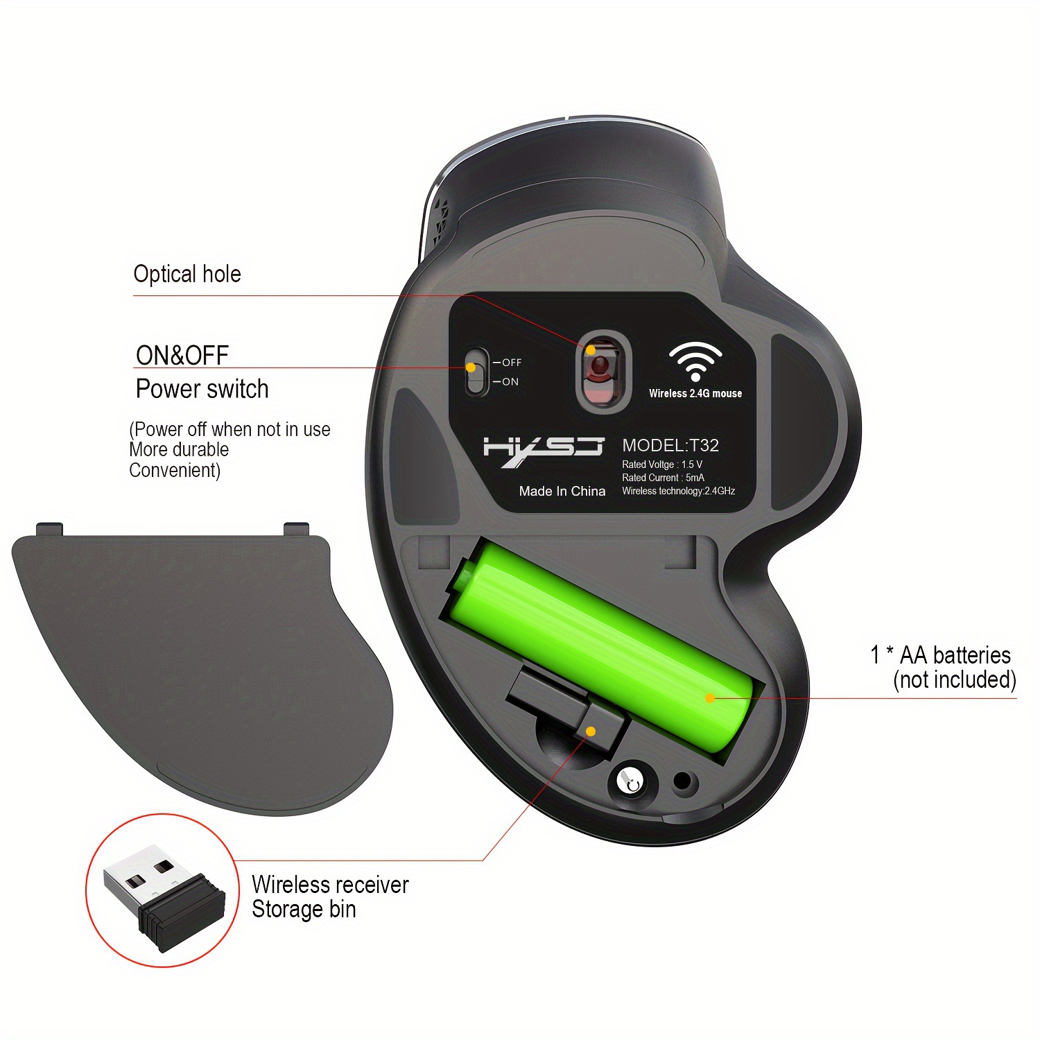 무선 마우스 사이드 휠 디자인 전용 2.4G 인체 공학적 마우스 예방 마우스 손스토어 가기