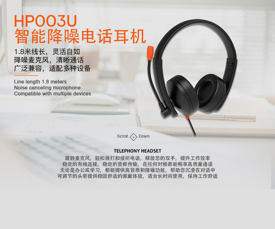 유선 헤드셋 음성 통화 비즈니스 통화 고객 서비스 소음 감소 헤드셋 MEETION HP003U