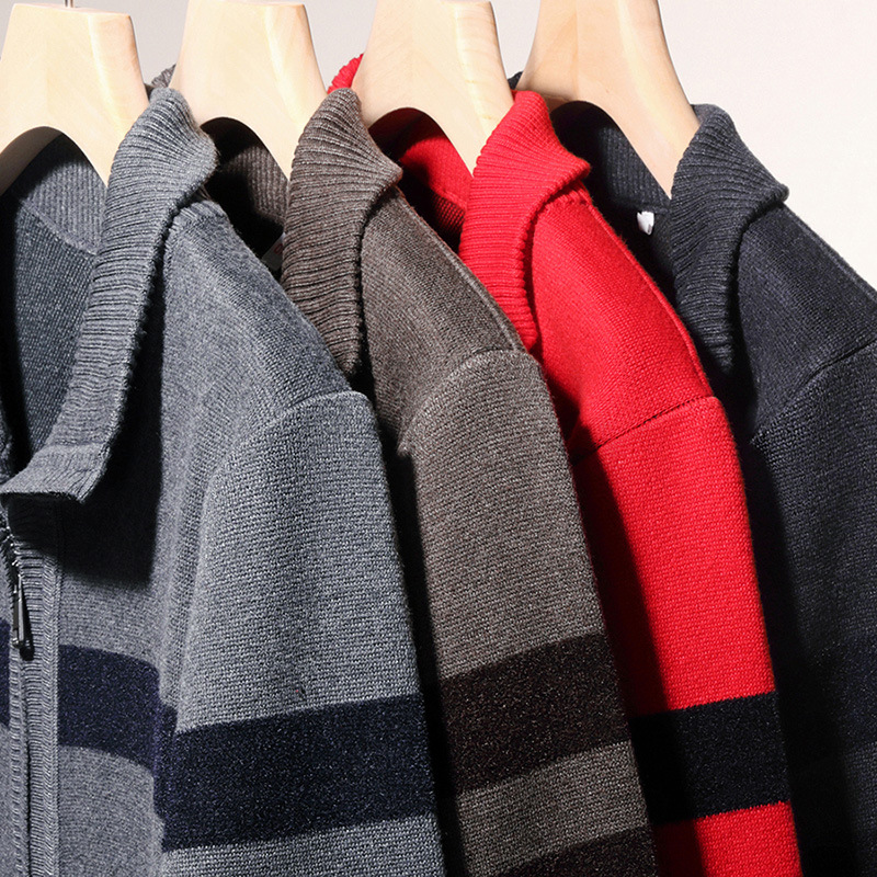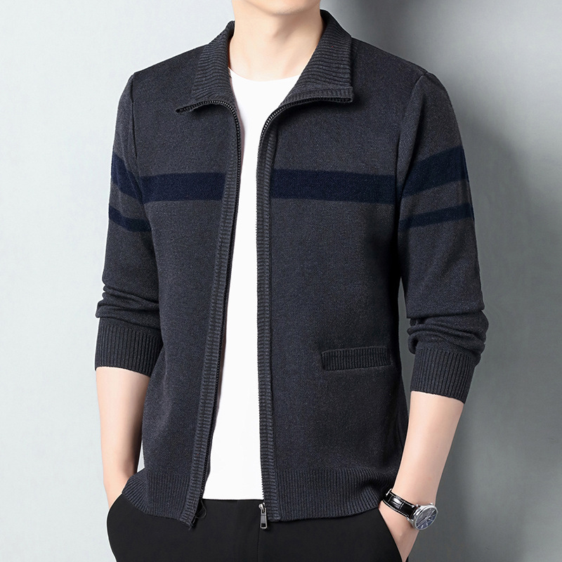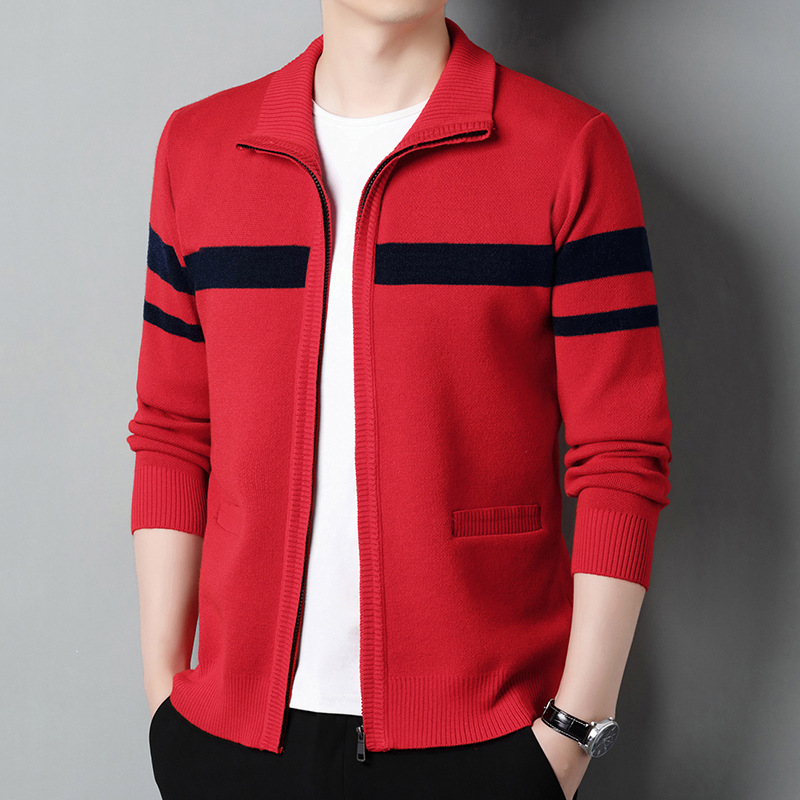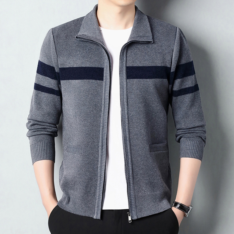 Puyuan 가을 겨울 하이 퀄리티 남성 지퍼 니트 카디건 젊고 중년 한국 컬러 블록 따뜻한 패셔너블 스웨터 재킷