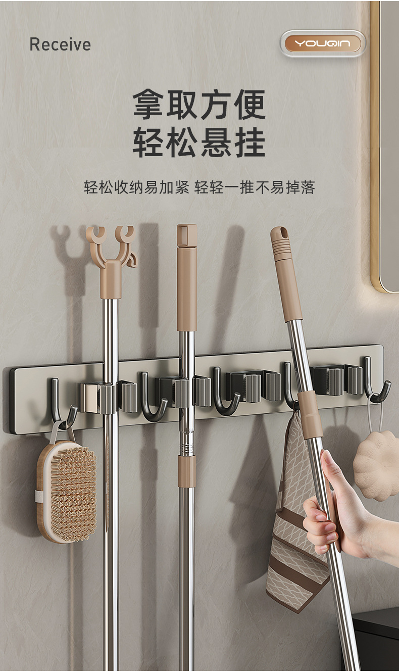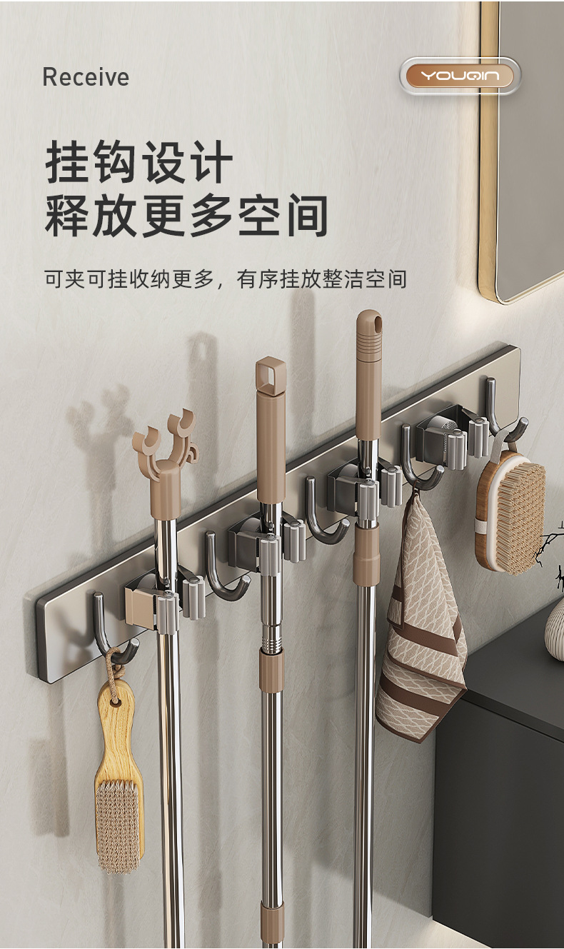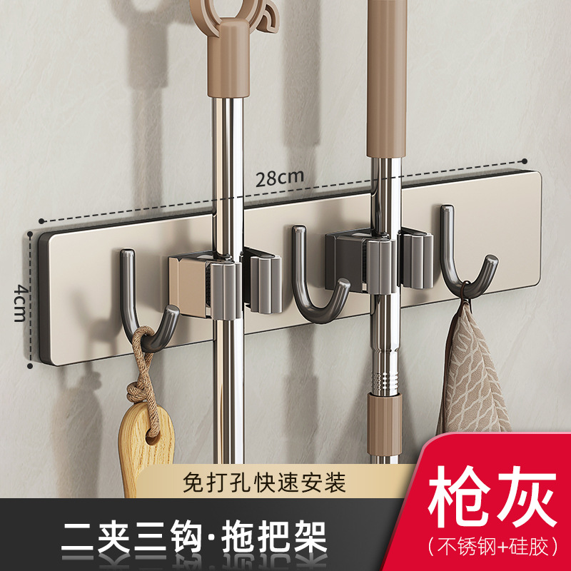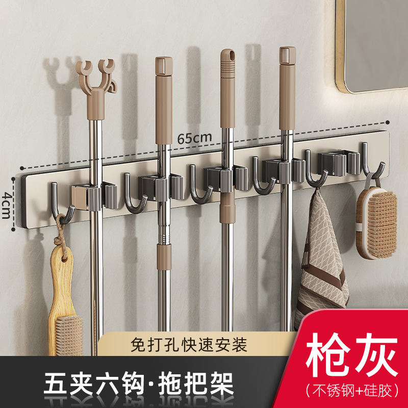 총 회색 걸레 벽 클립 스테인레스 스틸 후크 비 천공 화장실 저장 아티팩트 다기능 빗자루 고정 프레임