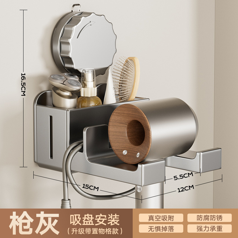 • [건그레이] 업그레이드된 흡착컵 헤어드라이어 수납선반