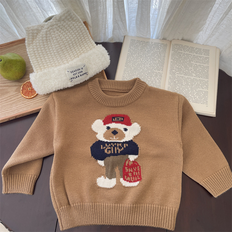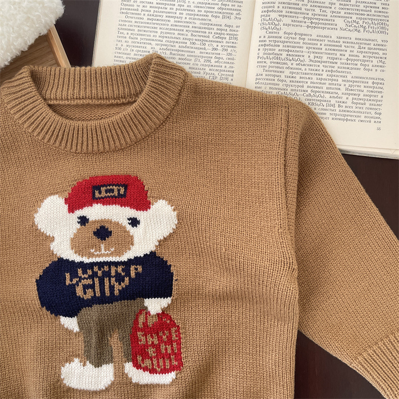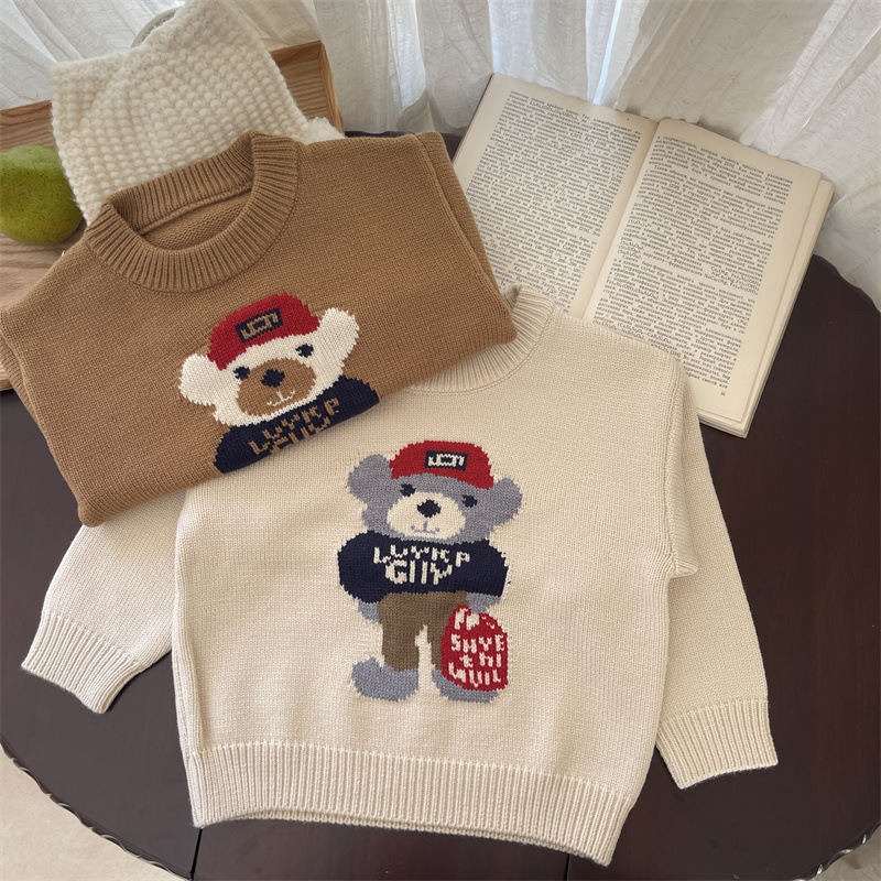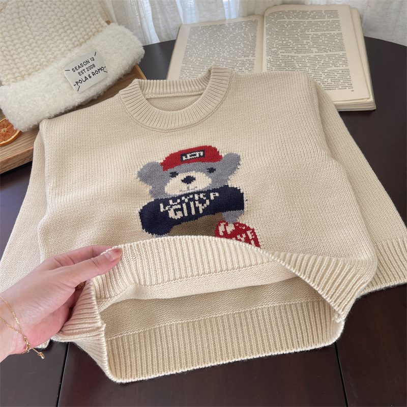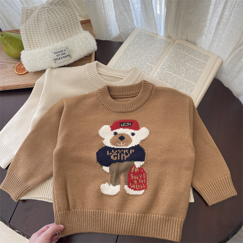 소년 소녀 스웨터 2024 봄 가을과 겨울 새로운 어린이 크루 넥 만화 니트웨어 아기 소녀 풀오버 스웨터스토어 가기