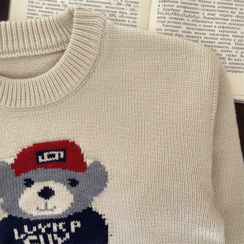 소년 소녀 스웨터 2024 봄 가을과 겨울 새로운 어린이 크루 넥 만화 니트웨어 아기 소녀 풀오버 스웨터