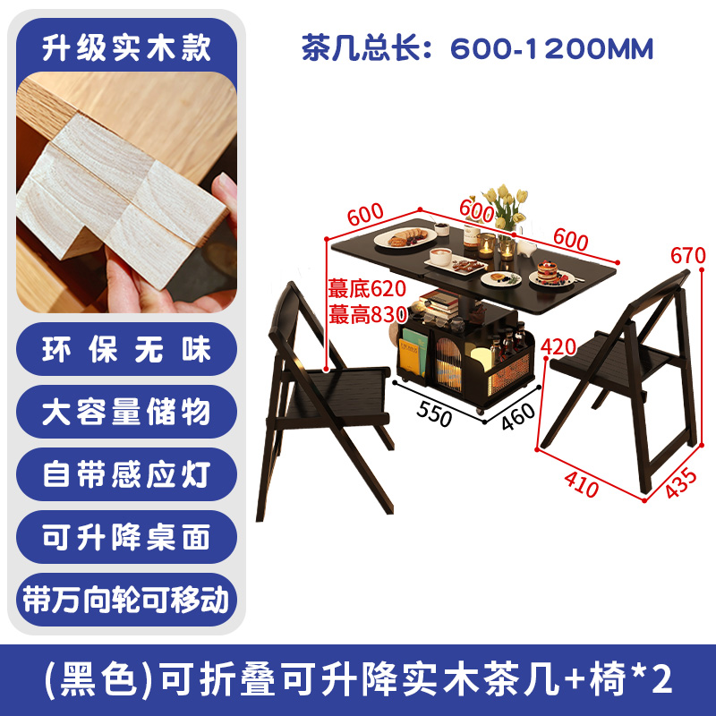 • εααααε올 원목 야간 블랙 모바일 리프팅 커피 테이블 + 의자*2εααααε