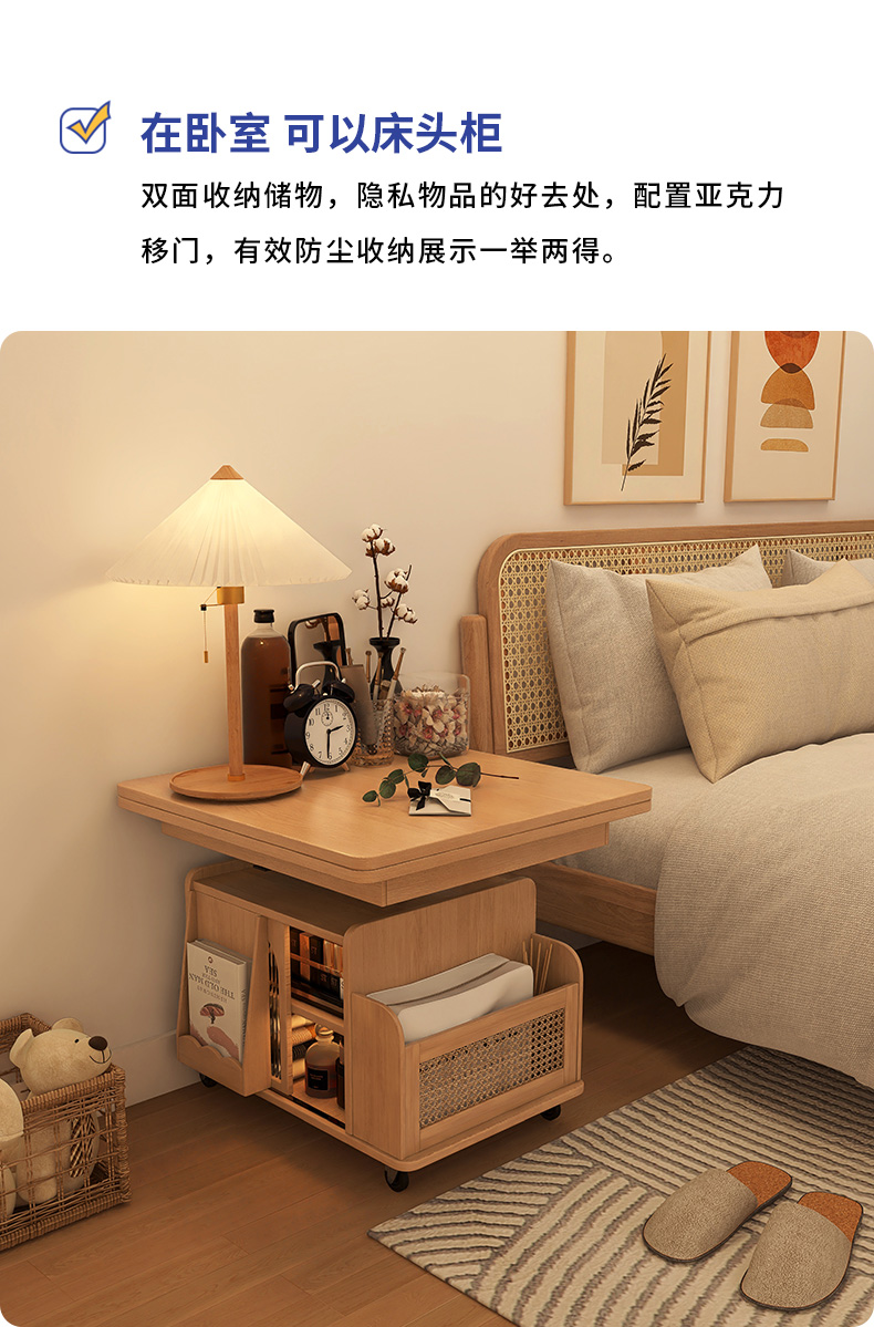 CS 높이 조절 가능한 티 테이블 이동식 사이드 테이블 카트 원목 버스 사이드 테이블 바퀴 달린 티 테이블 다기능 접이식 식탁스토어 가기