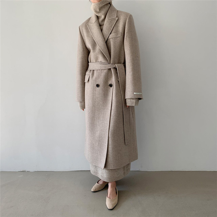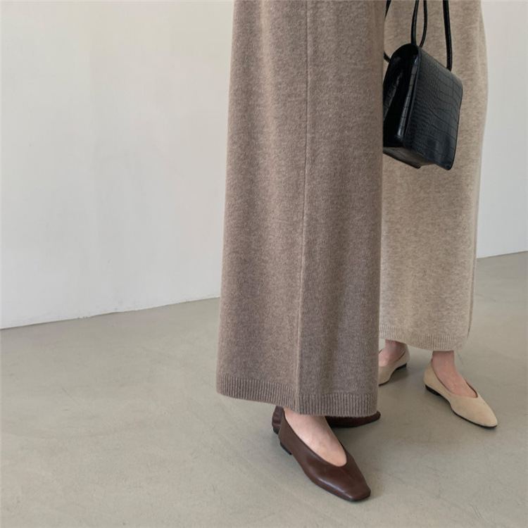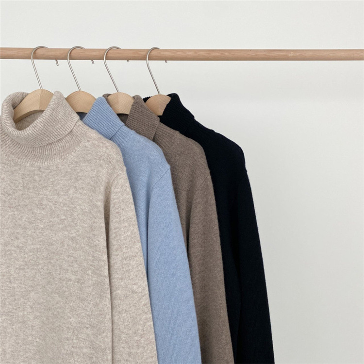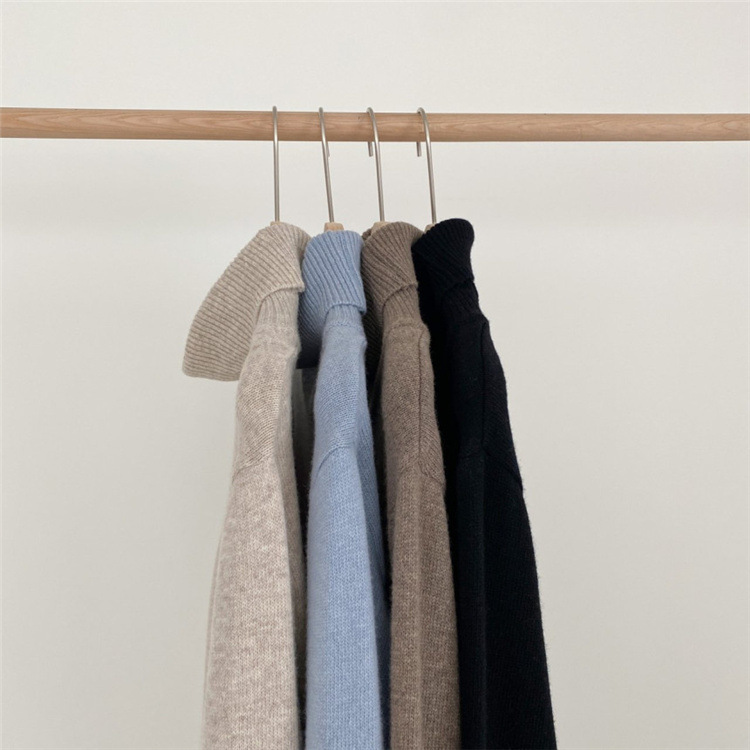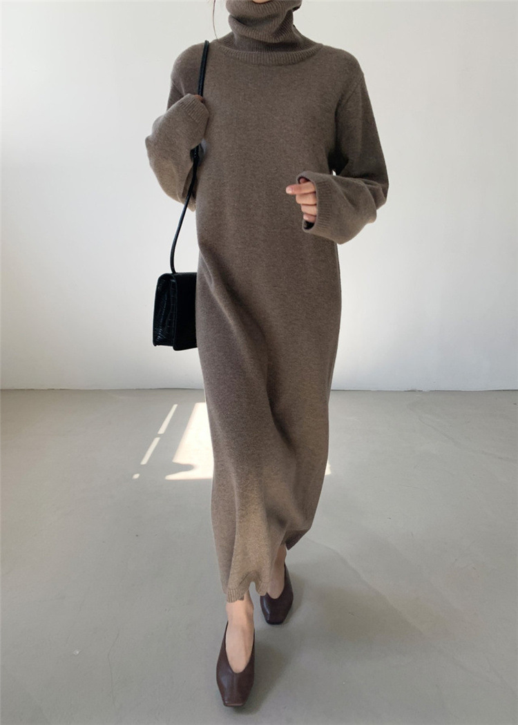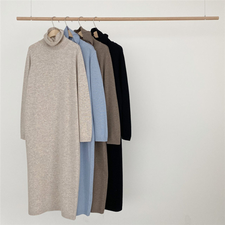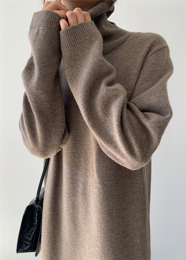 한국식 가을과 겨울 여성 캐시미어 원피스 긴 무릎 길이의 스웨터 원피스 높은 목 느슨한 높은 목 니트 두꺼운 긴 원피스