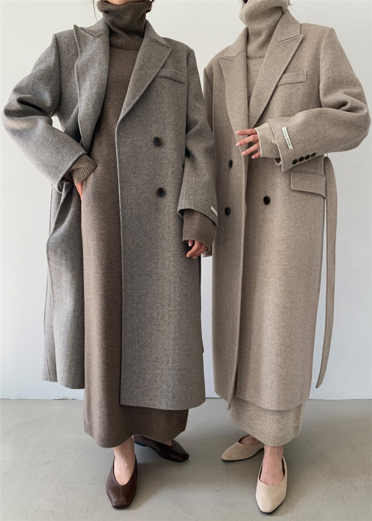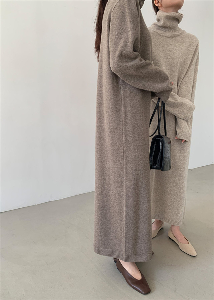 한국식 가을과 겨울 여성 캐시미어 원피스 긴 무릎 길이의 스웨터 원피스 높은 목 느슨한 높은 목 니트 두꺼운 긴 원피스스토어 가기