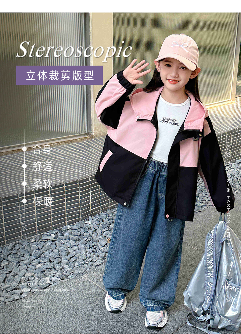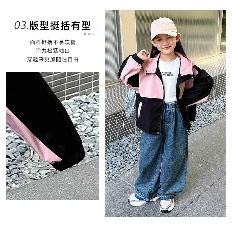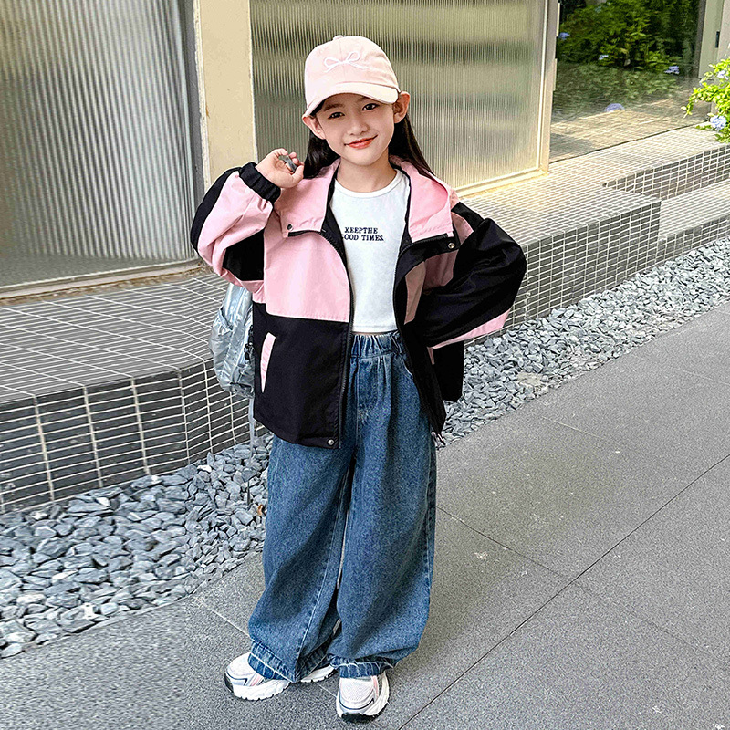소녀의 가을 코트 2024 새로운 스타일 큰 소년 소녀의 봄과 가을 루소 어린이 재킷 윈드 브레이커 탑스토어 가기