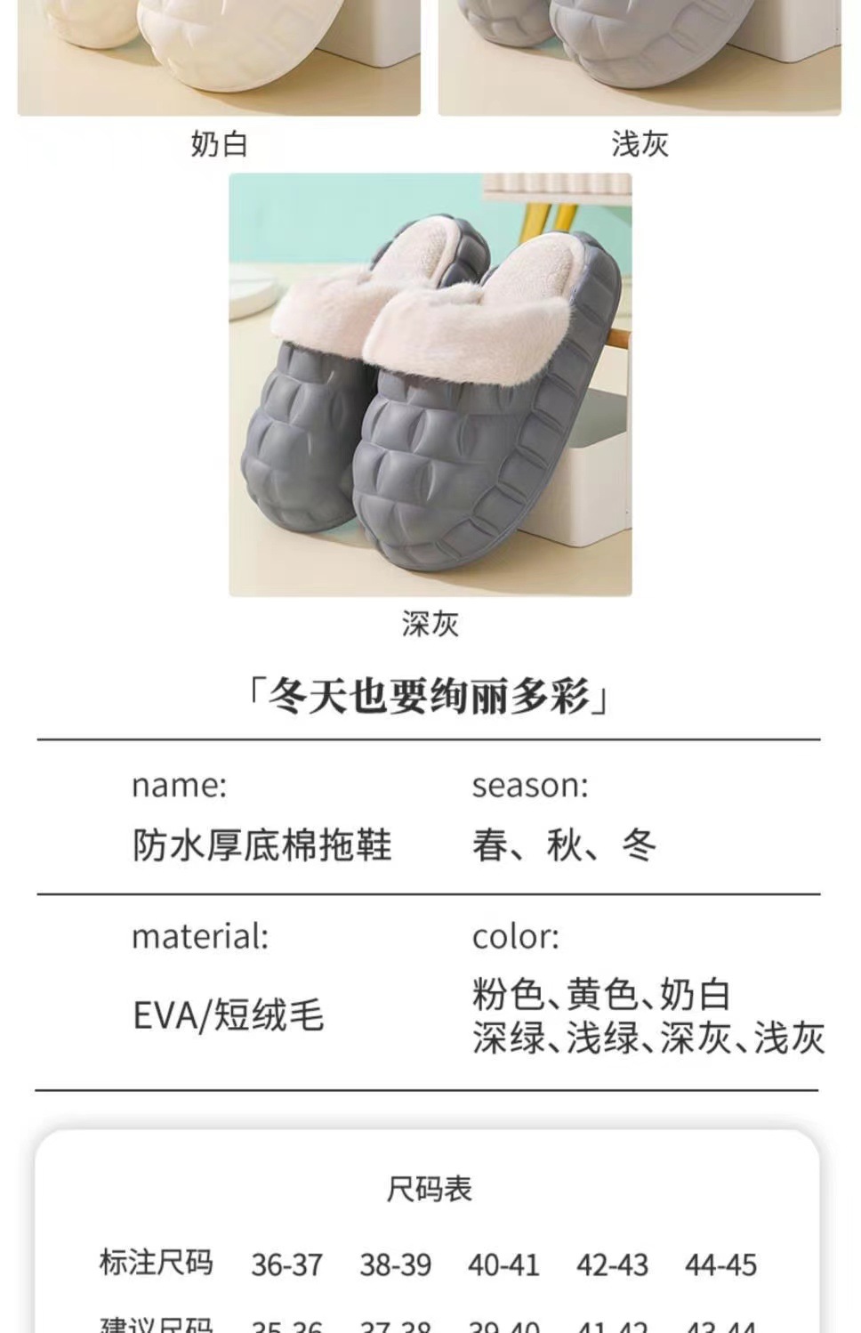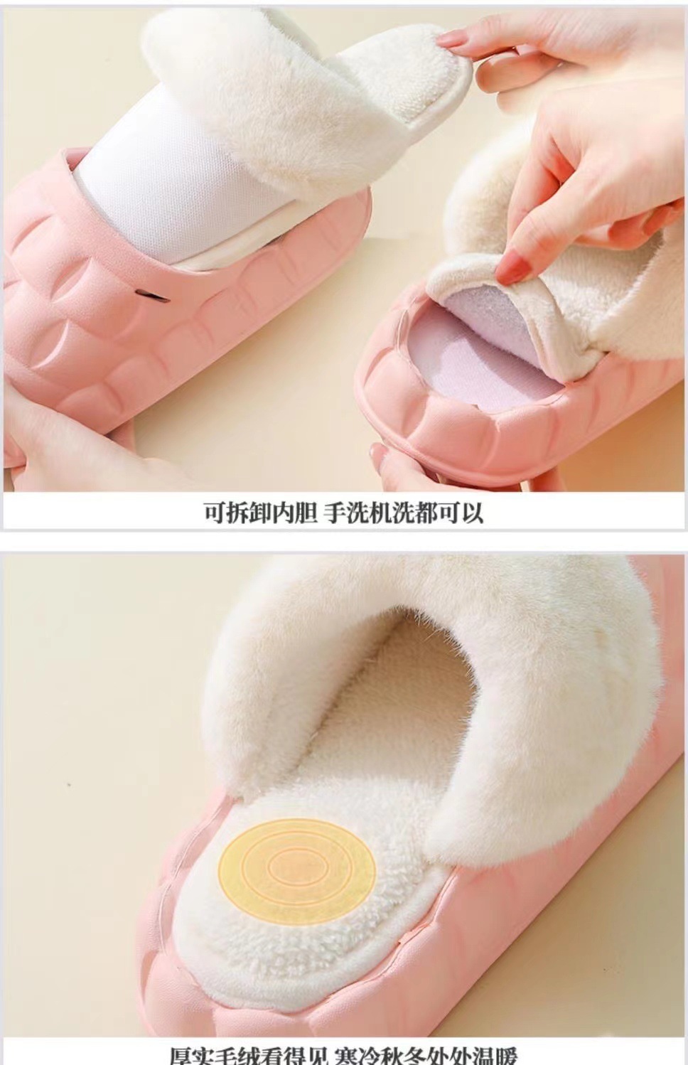 여성용 방수 면 슬리퍼, 가을 겨울용 두꺼운 밑창 실내 슬리퍼, 인스타그램 인기, 탈부착 가능, 남성용 겨울 보온 커플 슬리퍼, 외출용 및 실내용스토어 가기