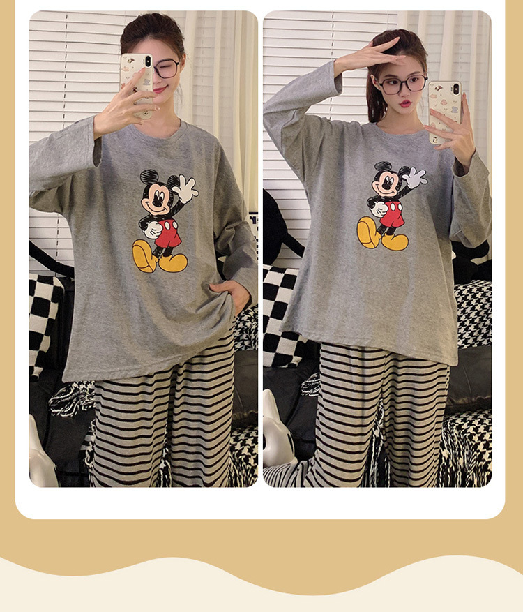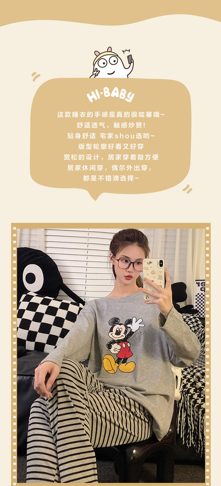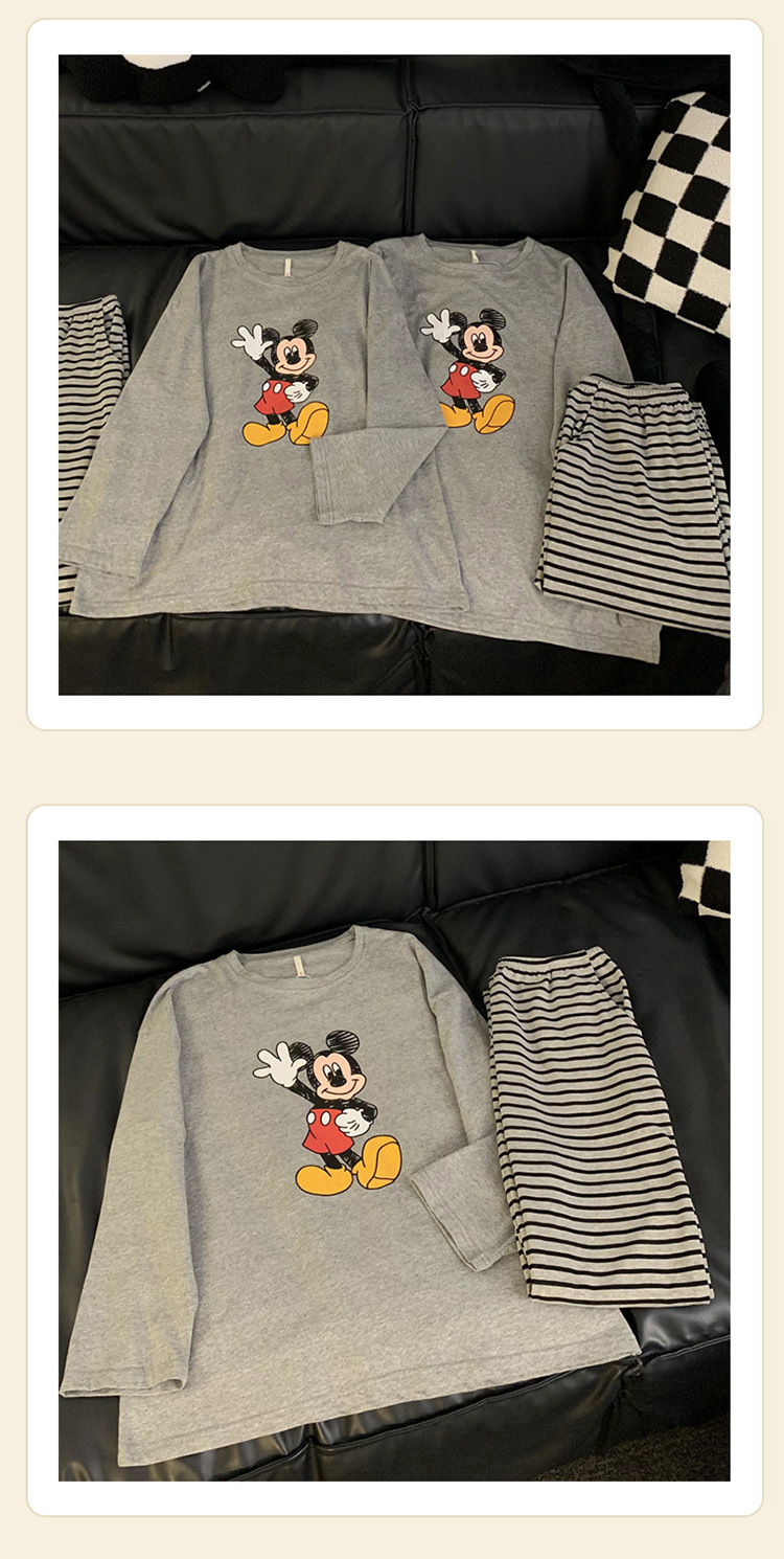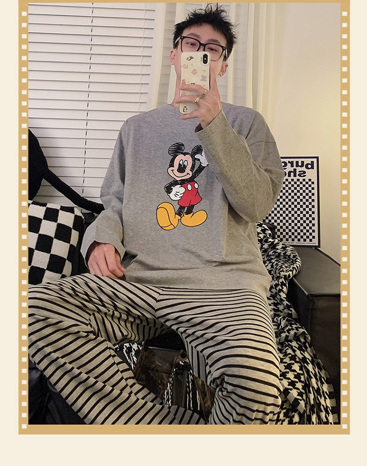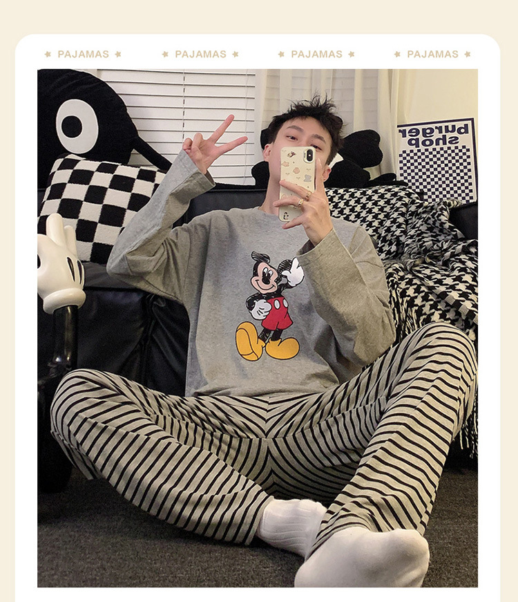2024 순면 커플 잠옷 여성용 긴 소매 만화 귀여운 회색 남자의 봄과 가을 얇은 홈 의류 세트스토어 가기