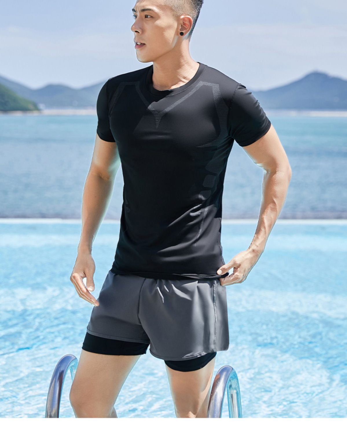 남자 수영 트렁크 2025 새로운 더블 레이어 방황 비치 플랫 앵글 빠른 건조 수영 트렁크 전문 스포츠 수영 장비스토어 가기