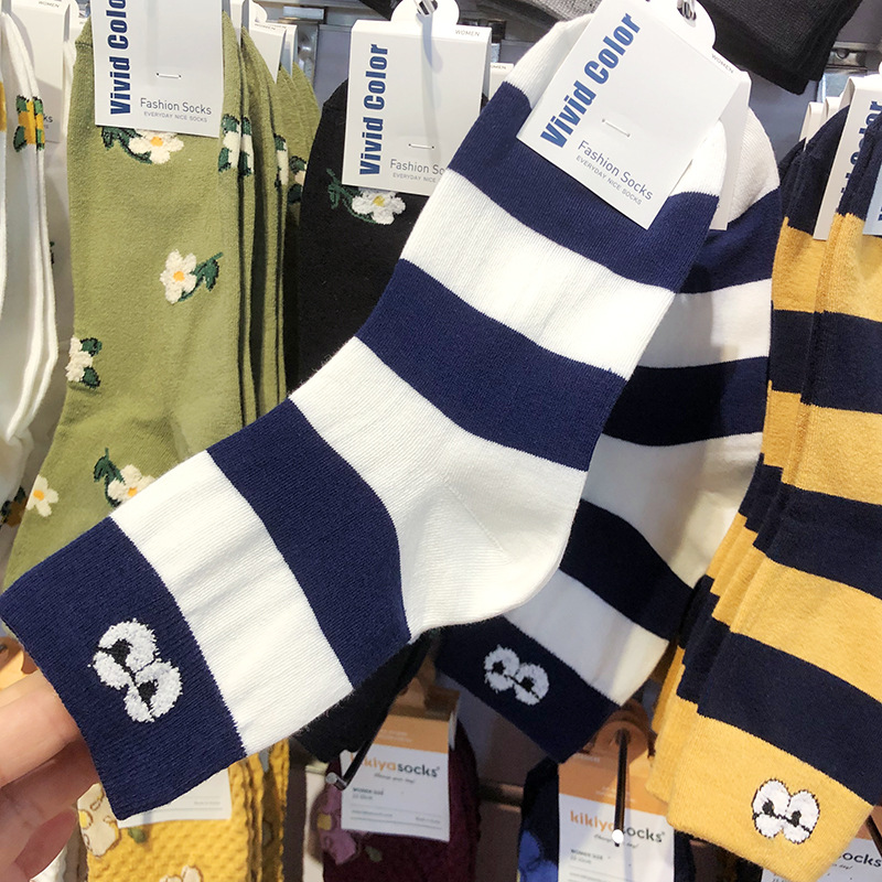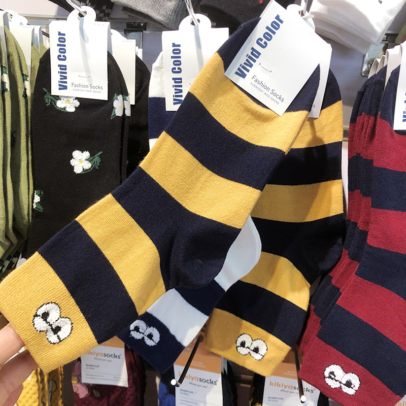 한국 가을과 겨울 새로운 양말 귀여운 큰 눈을 가진 귀여운 여자 양말 생체 내 몰려 만화 튜브 컬러 매칭면 양말스토어 가기