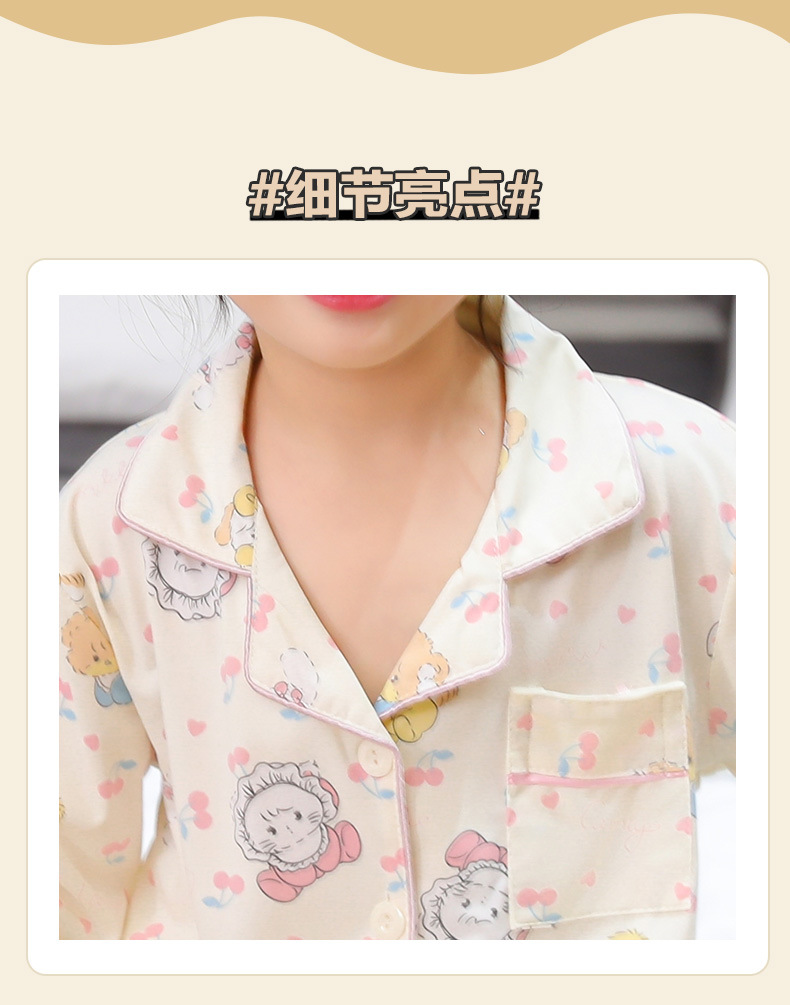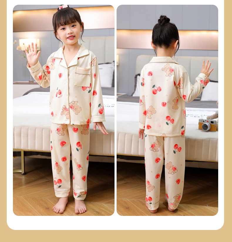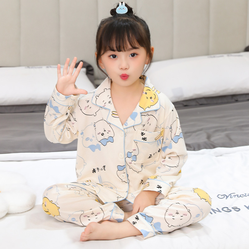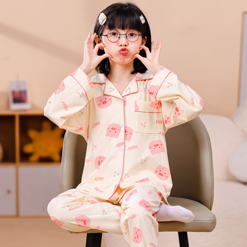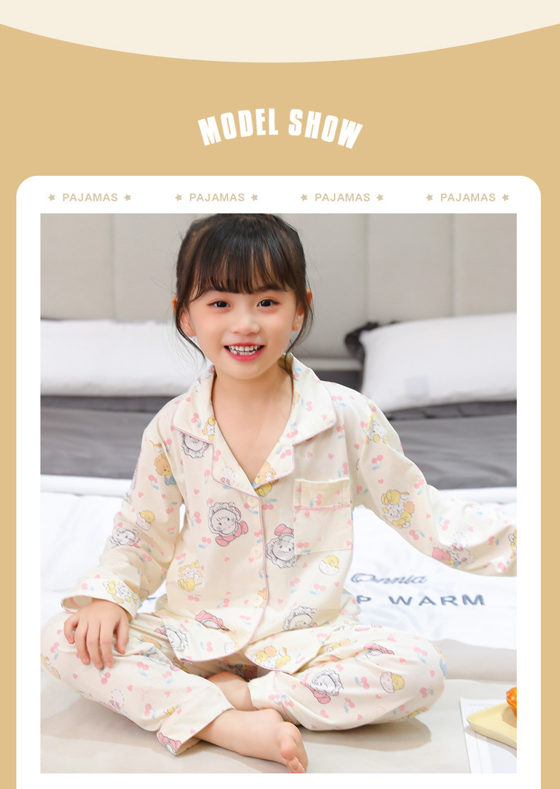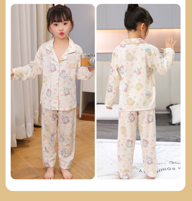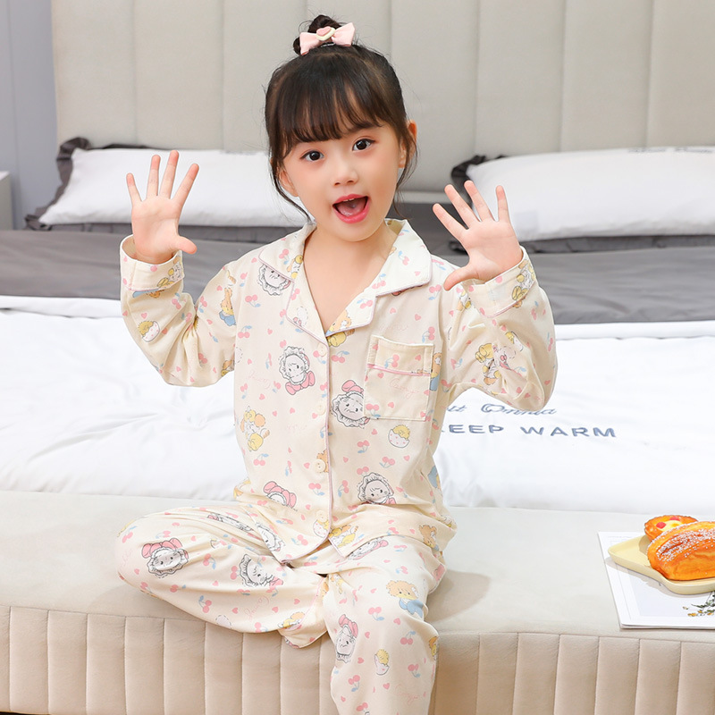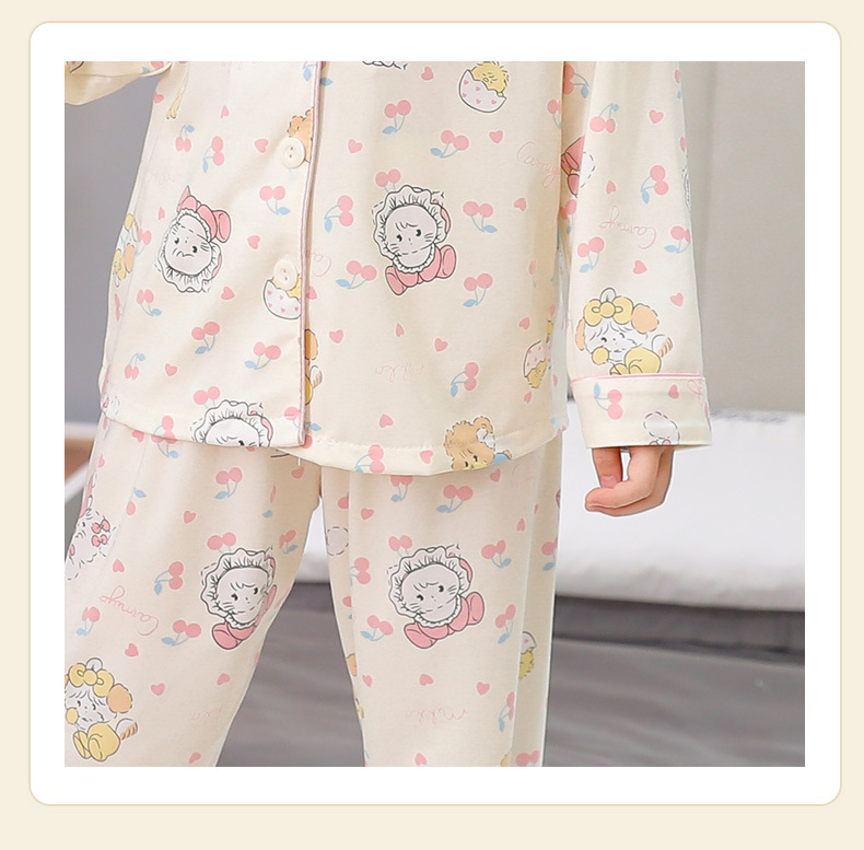 어린이 잠옷 봄과 가을 소녀 귀여운 만화 옷깃 카디건 긴 소매 느슨한 얇은 홈 옷