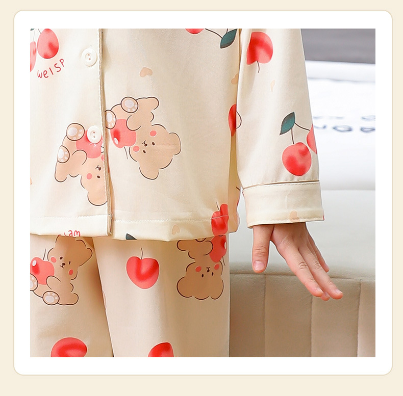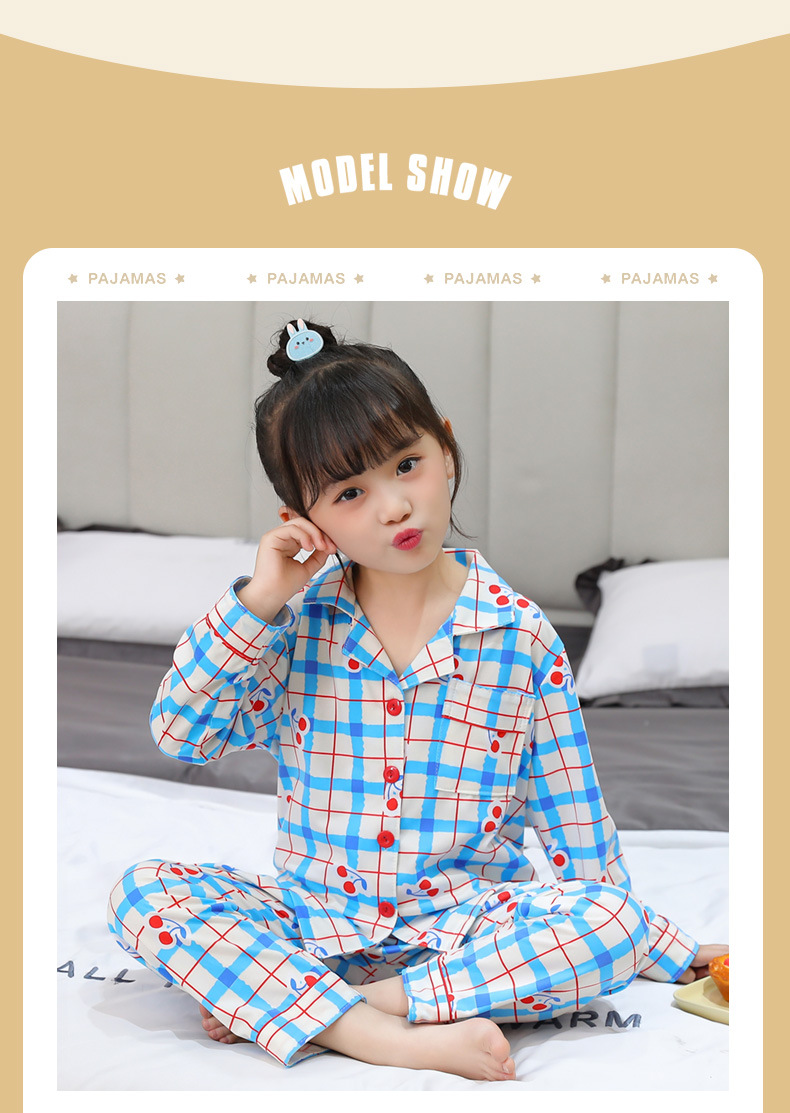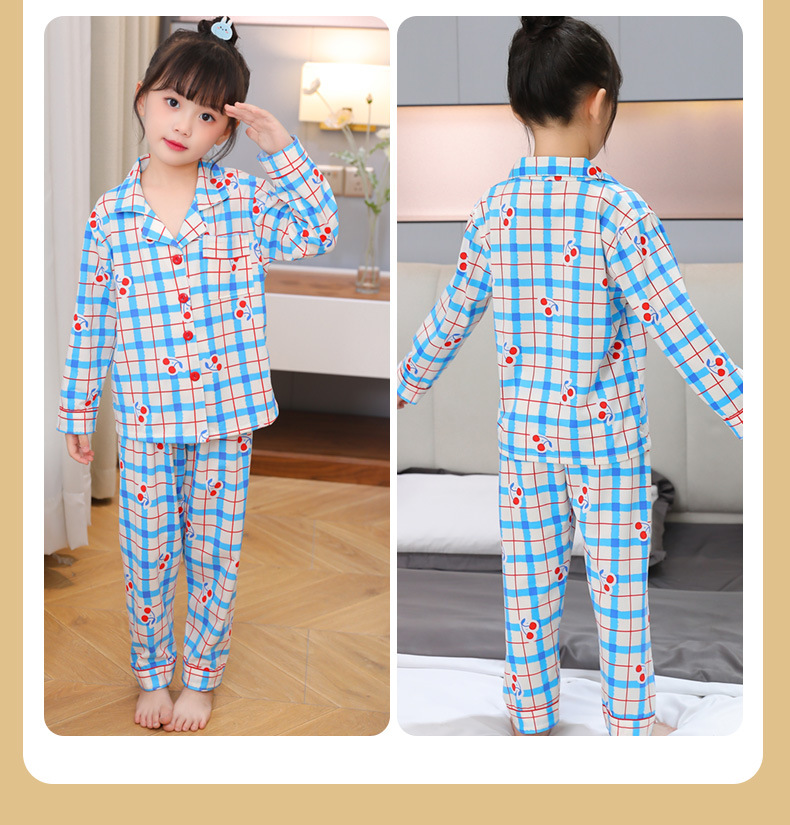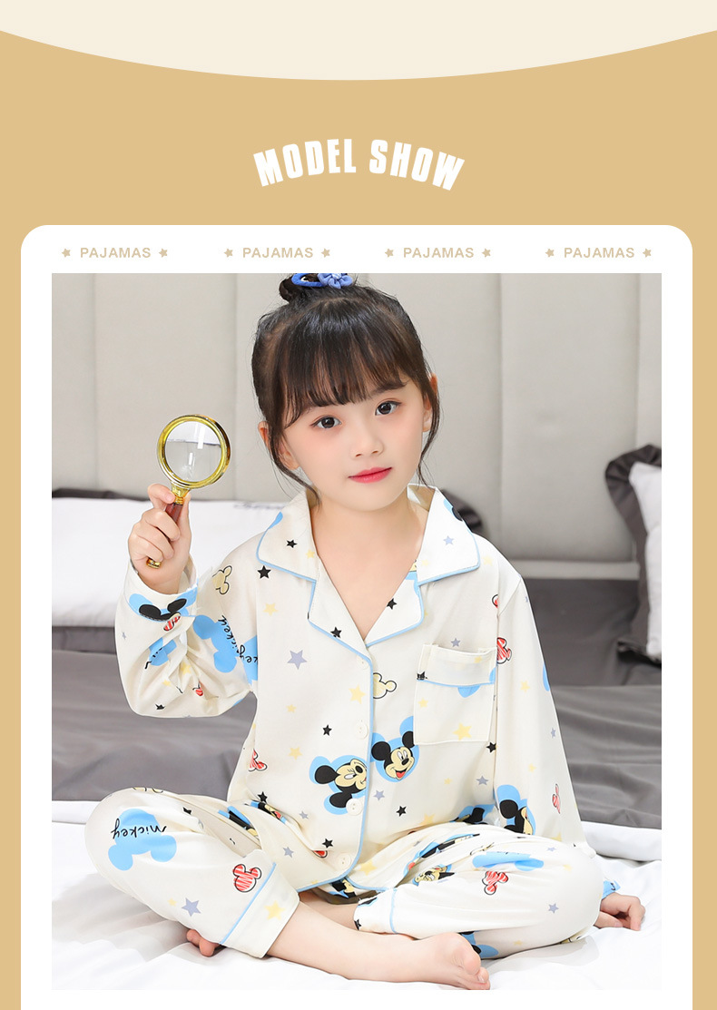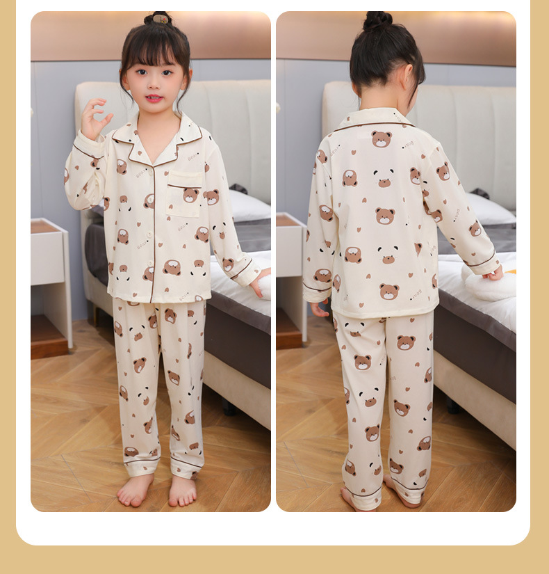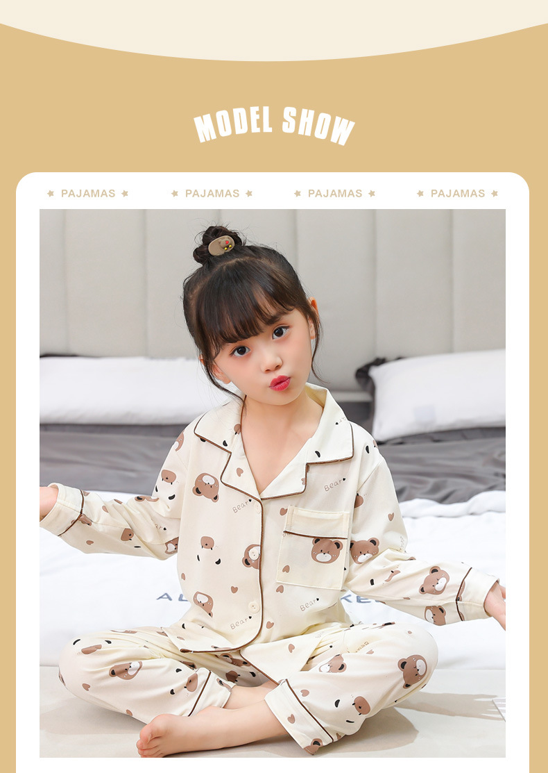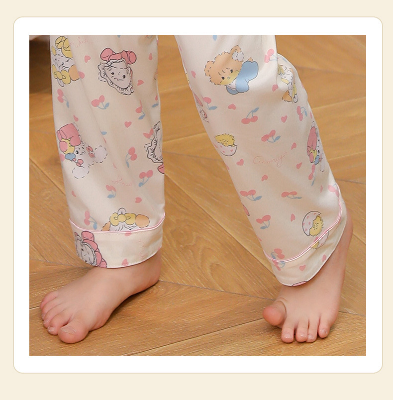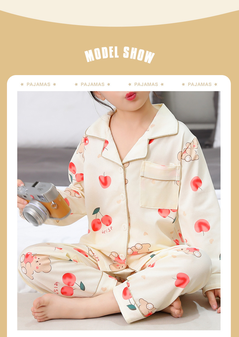 어린이 잠옷 봄과 가을 소녀 귀여운 만화 옷깃 카디건 긴 소매 느슨한 얇은 홈 옷
