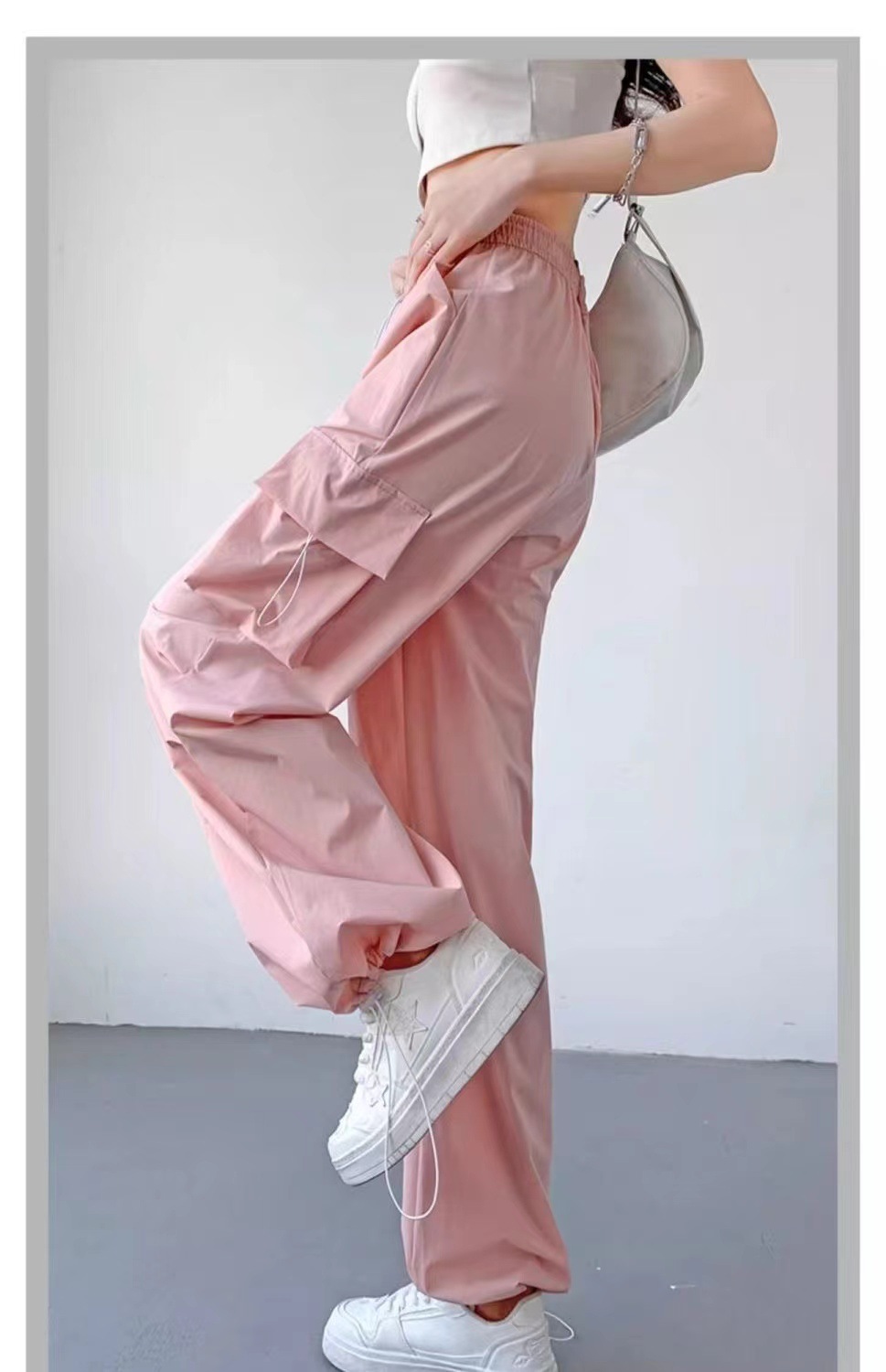빠른 건조 작업복 여성 여름 얇은 2024 새로운 충전 작은 얼음 실크 넓은 다리 봄과 가을 등산 스포츠 바지스토어 가기