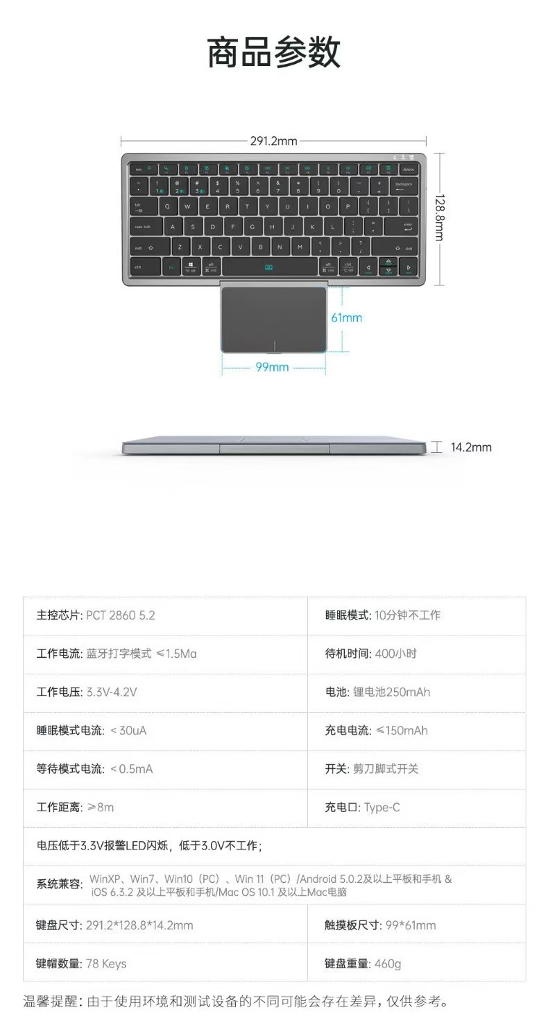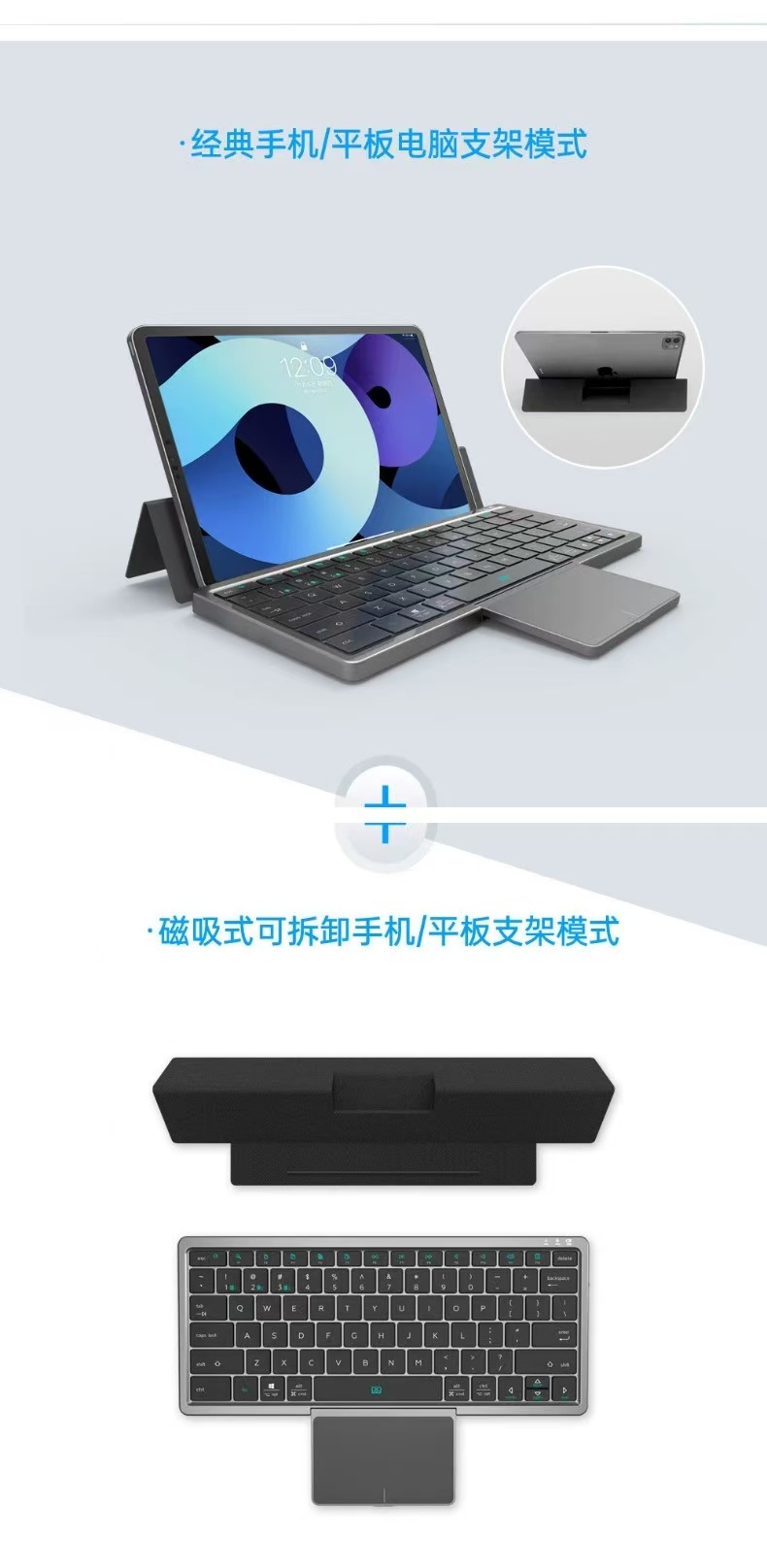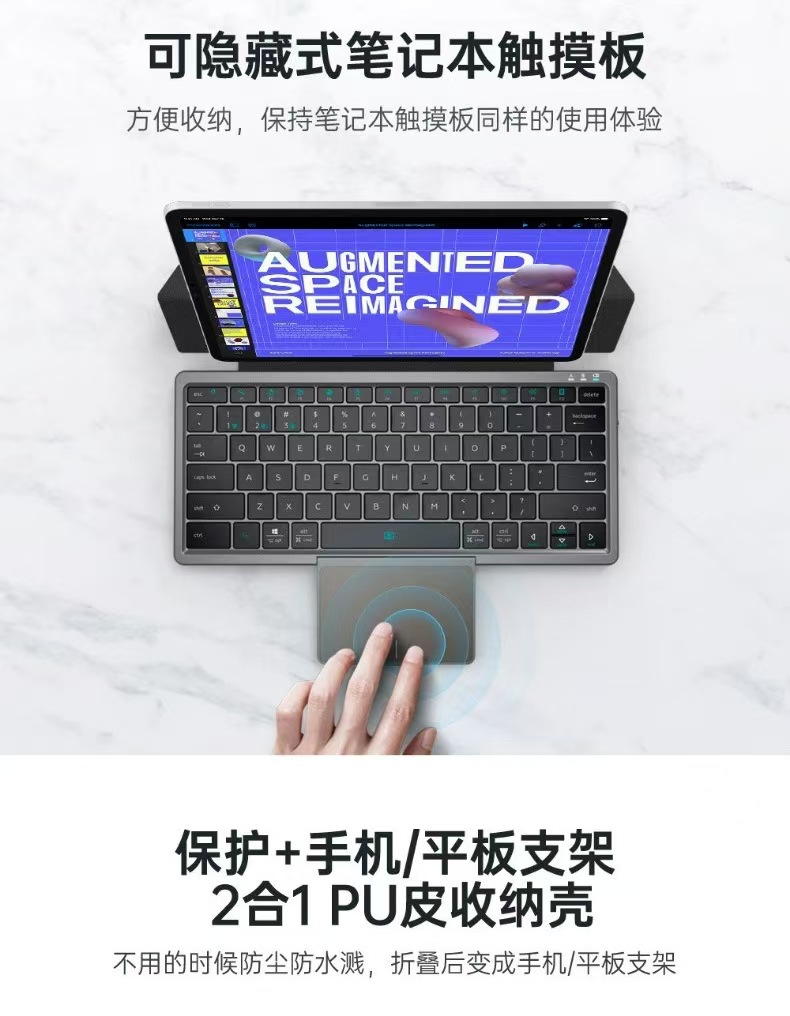 PU 가죽 숨겨진 터치 패드 휴대용 키보드와 전화 용 무선 블루투스 접이식 키보드