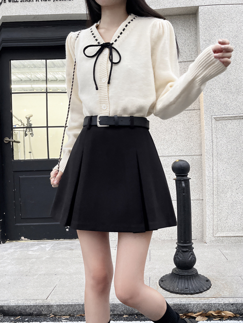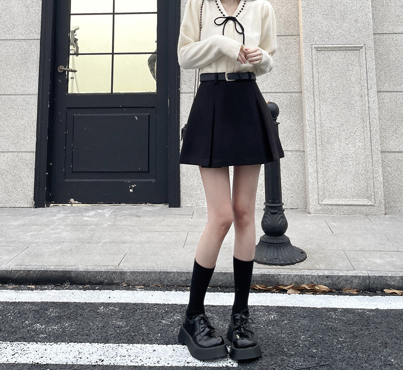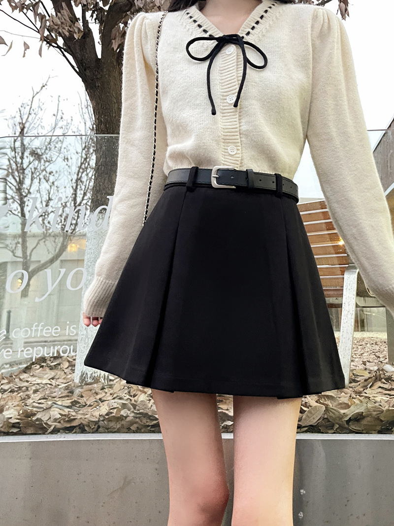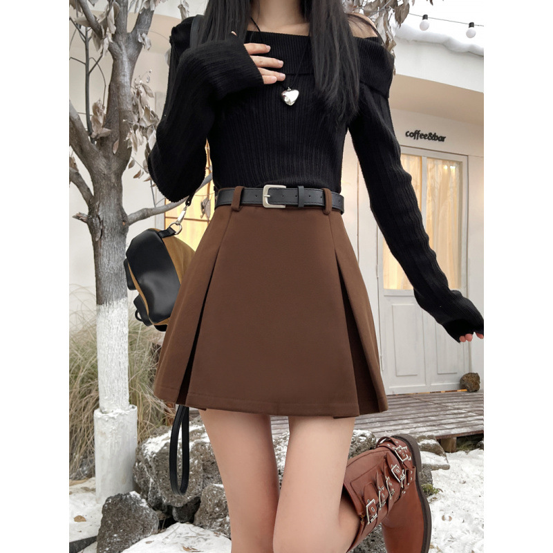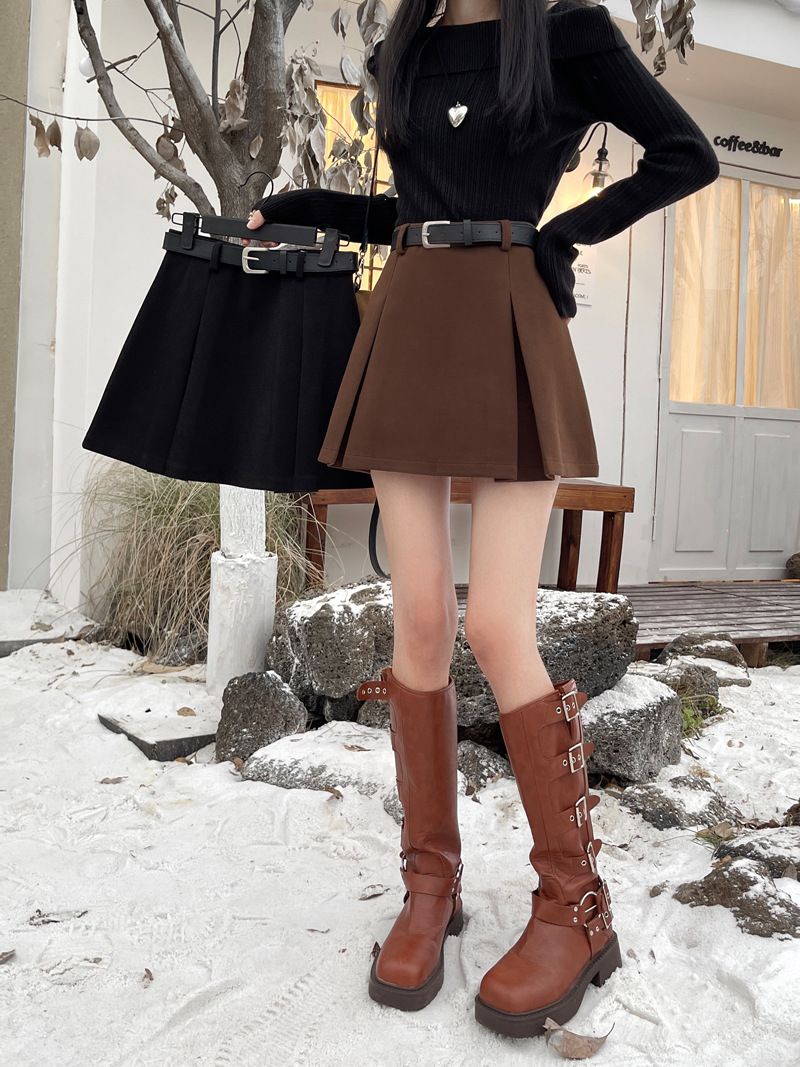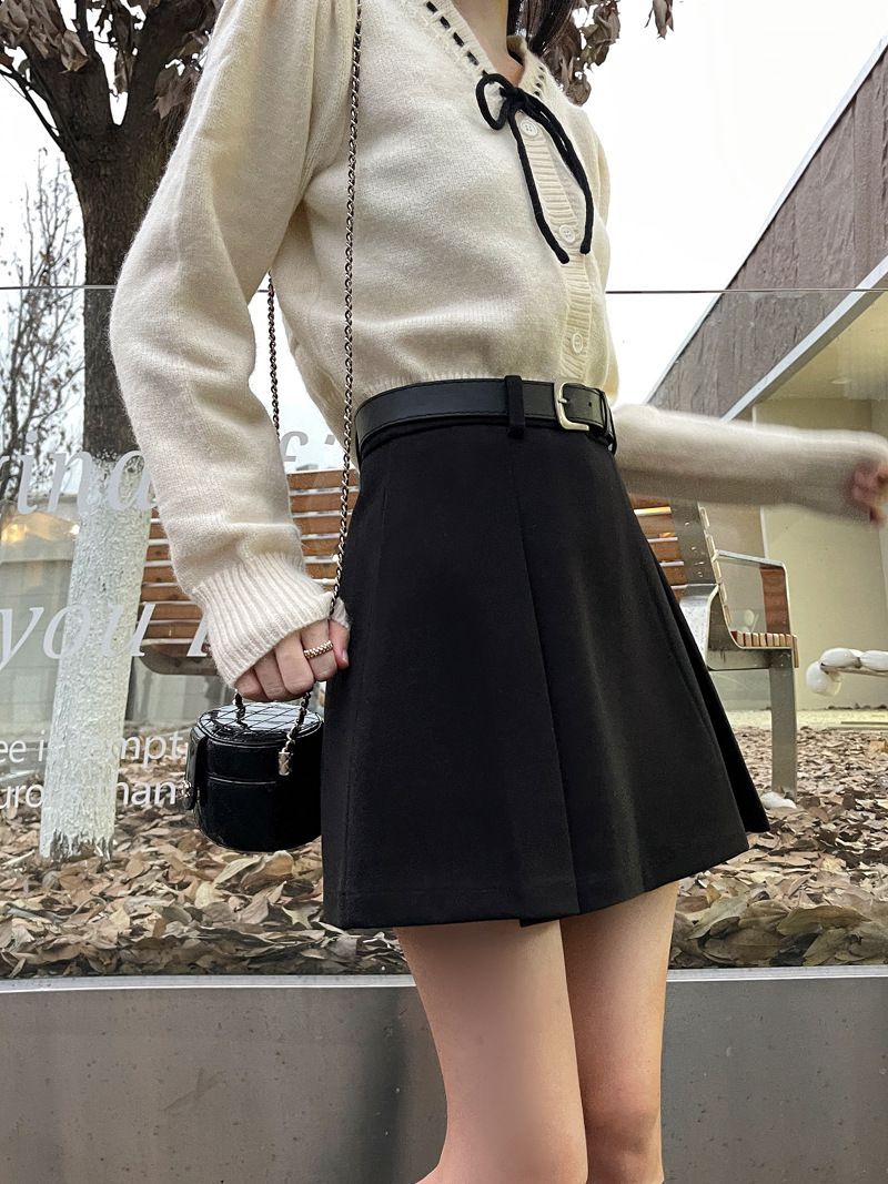 진짜 진짜 가격 2024 가을과 겨울 새로운 패션 울 두꺼운 A 자형 주름 치마 높은 허리 슬림 스커트스토어 가기