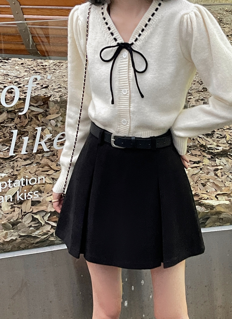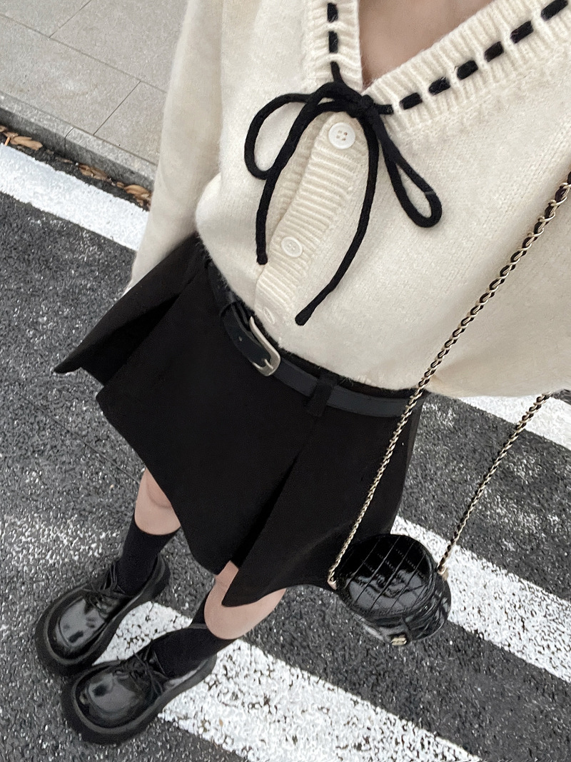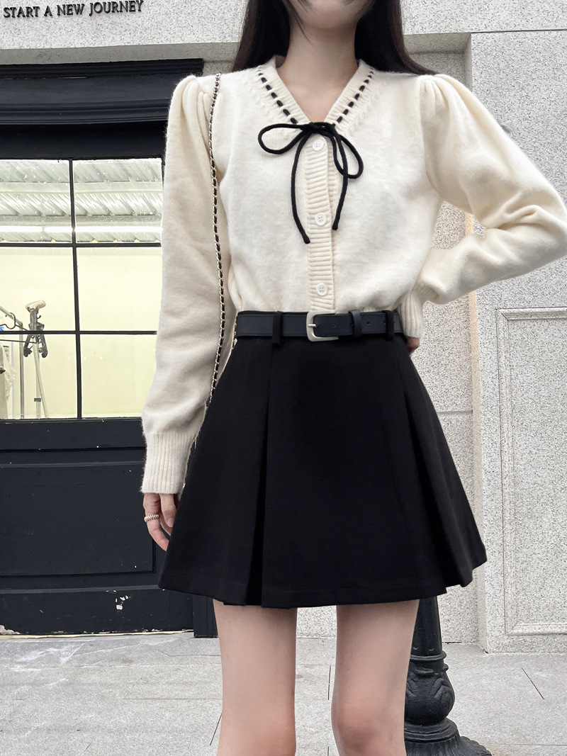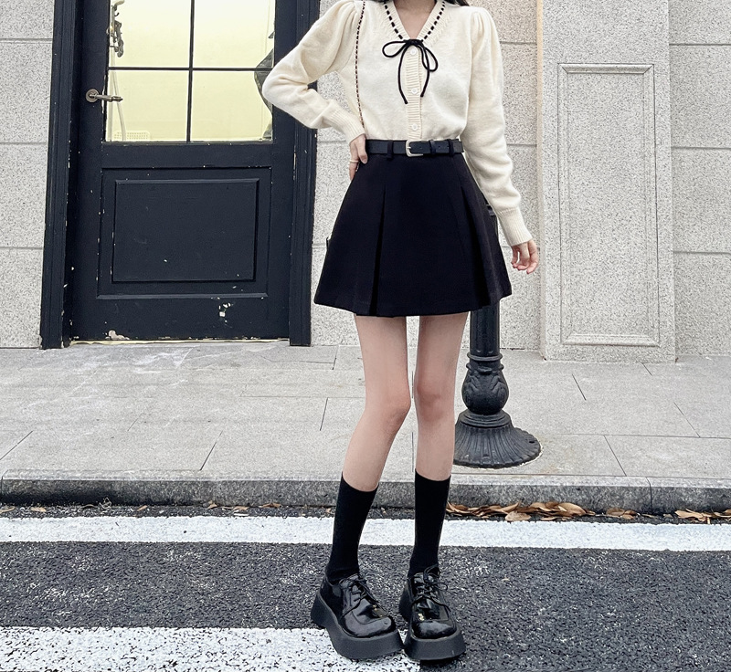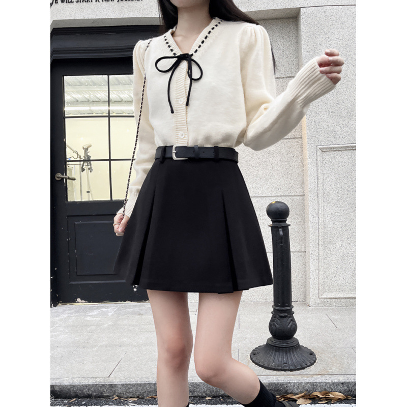 진짜 진짜 가격 2024 가을과 겨울 새로운 패션 울 두꺼운 A 자형 주름 치마 높은 허리 슬림 스커트스토어 가기